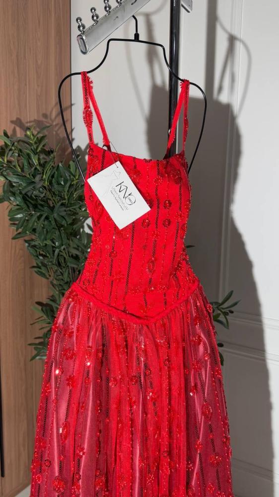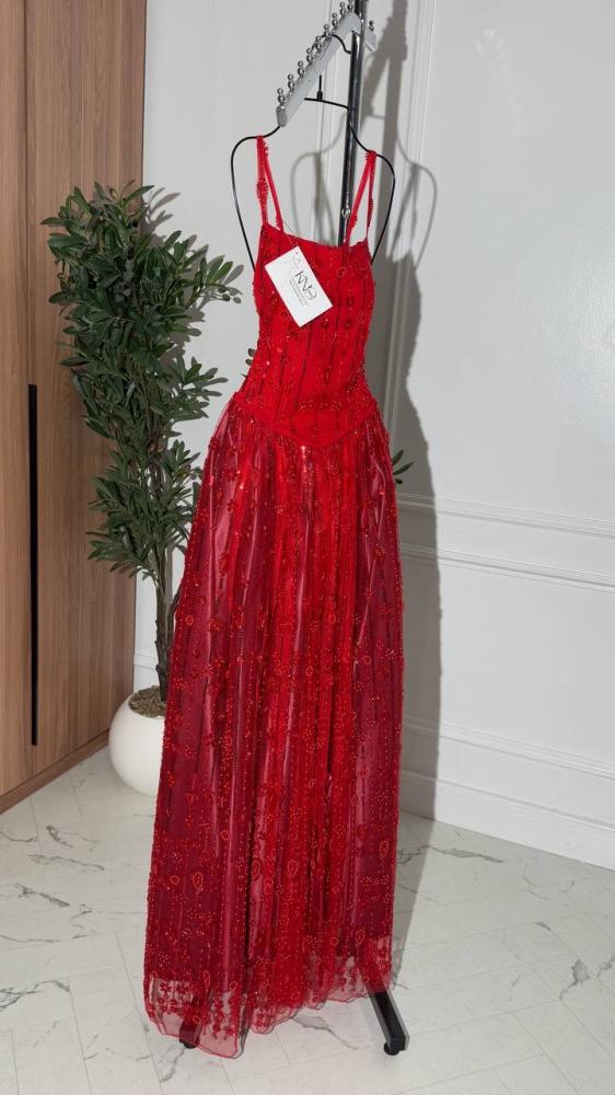 فستان احمر طويل بدون اكمام يجمع بين الفخامة والأنوثة، بتصميم بلا أكمام ولمسات لامعة تلفت الأنظار. مثالي لكل مناسبة تبحثين فيها عن التألق بإطلالة لا تُنسى.