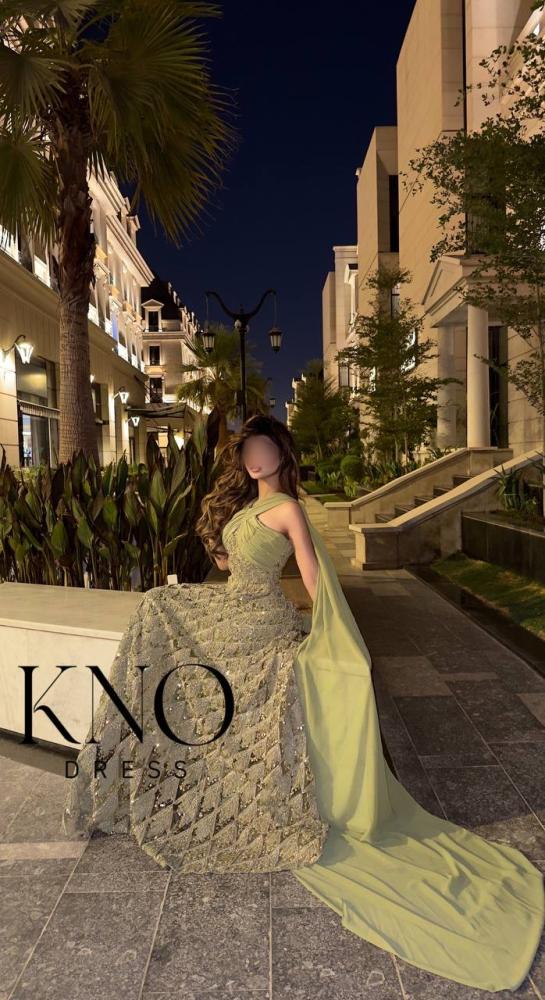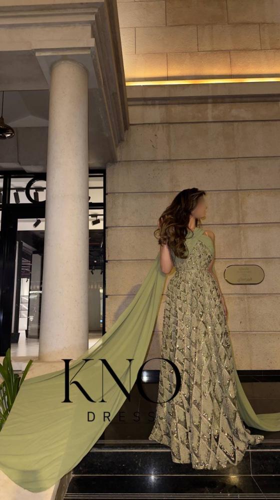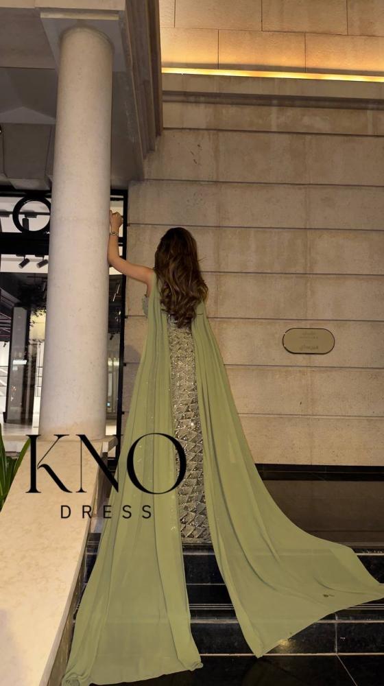 يناسب الإكسسوارات الذهبية أو الفضية الناعمة، مع حذاء بكعب أنيق. تُبرز تسريحة شعر مرفوعة أو جانبية تفاصيل التطريز، مع مكياج هادئ بدرجات طبيعية أو خضراء ناعمة لإطلالة متكاملة.