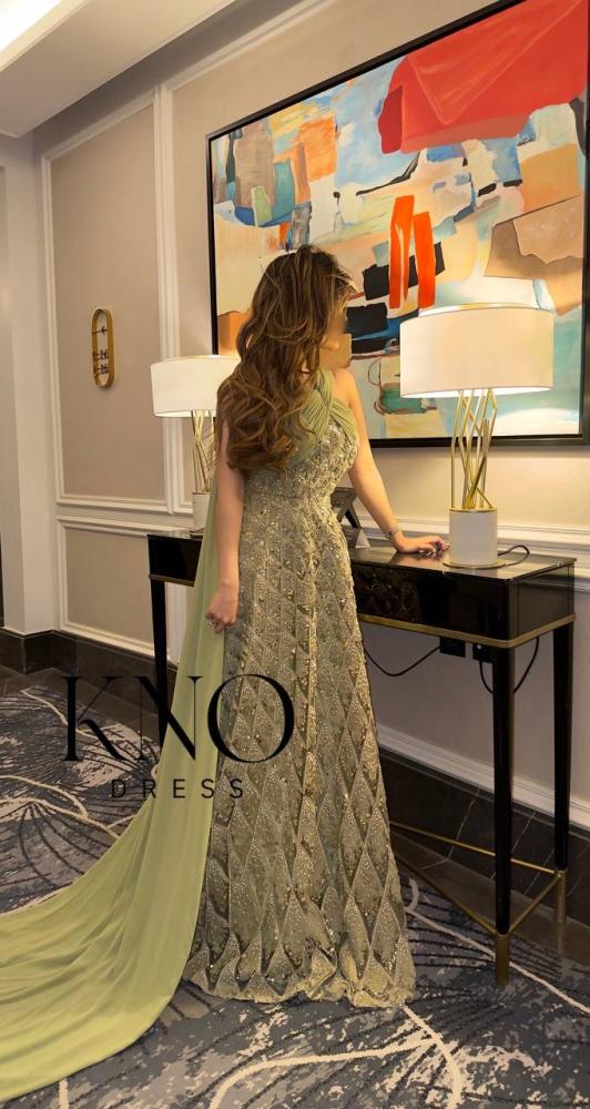 فستان أخضر فاخر بتل مطرز وشيفون جورجيت يمنحك إطلالة أنثوية راقية تجمع بين الأناقة والفخامة. صُنع من خامة التل المطرزة بالخرز البراق بتصميم هندسي مميز يعكس جمال التفاصيل ودقة التنفيذ، ويزينه شيفون جورجيت انسيابي يضفي حركة ناعمة ولمسة أنثوية جذابة، ليكون خيارًا مثاليًا للسهرات والمناسبات الراقية.