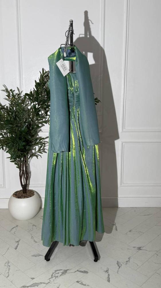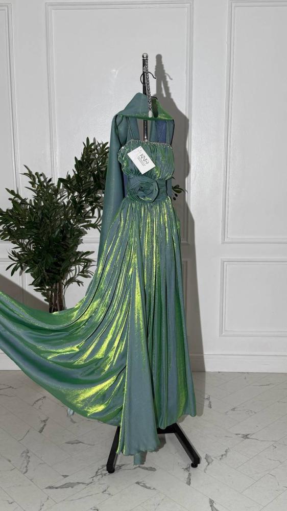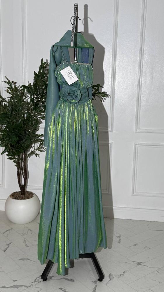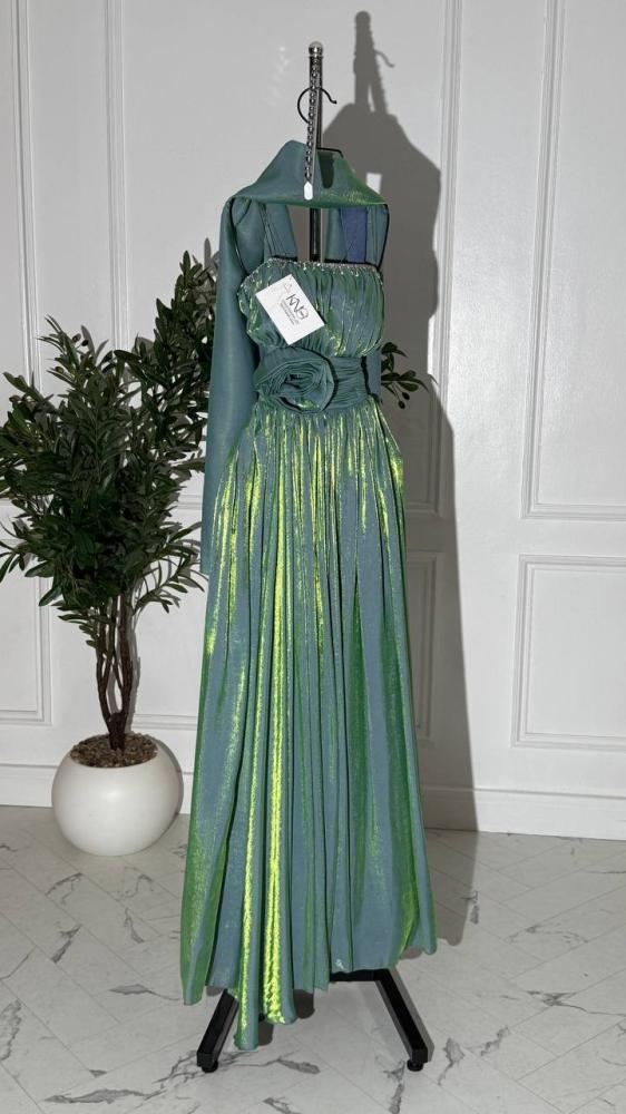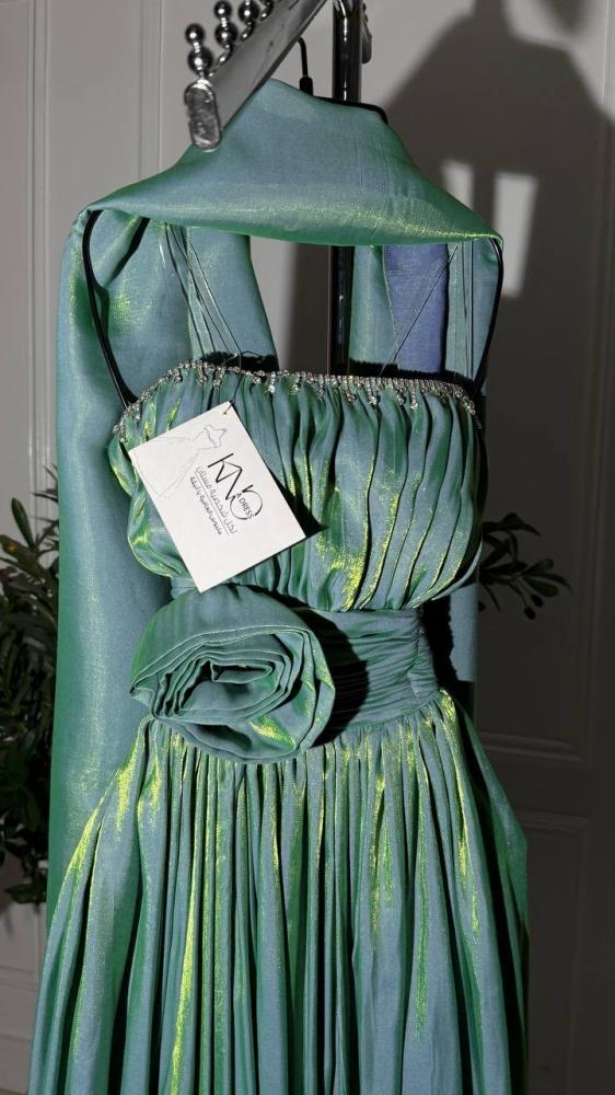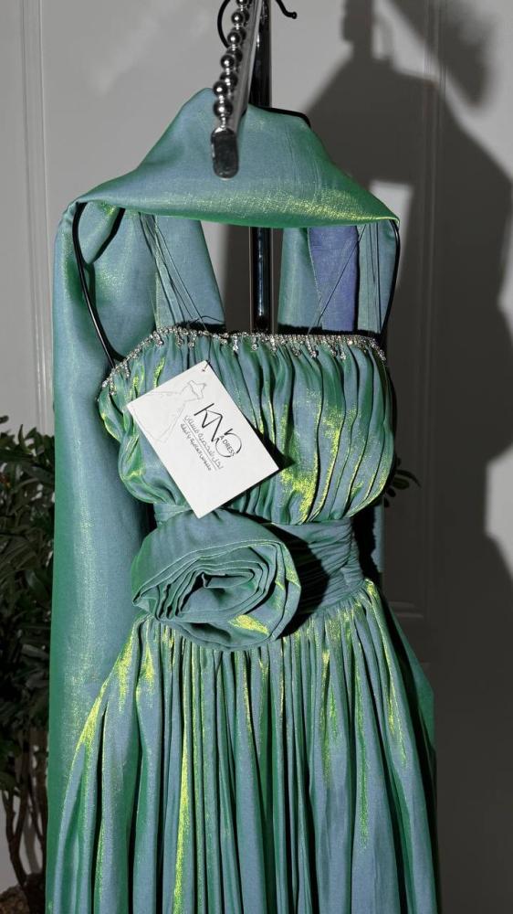 فستان اخضر كرنكل وردة بكريستالات فاخرة أنيقة