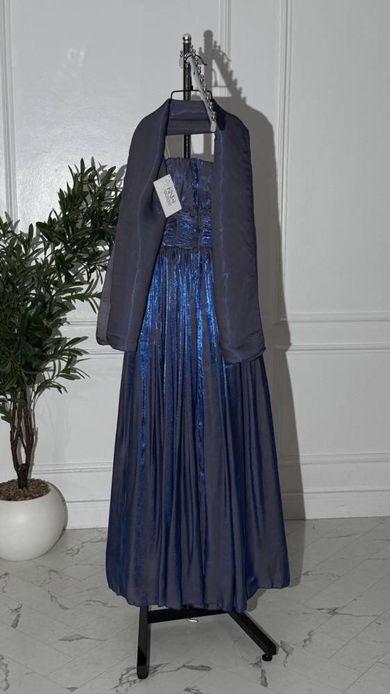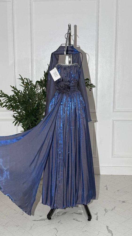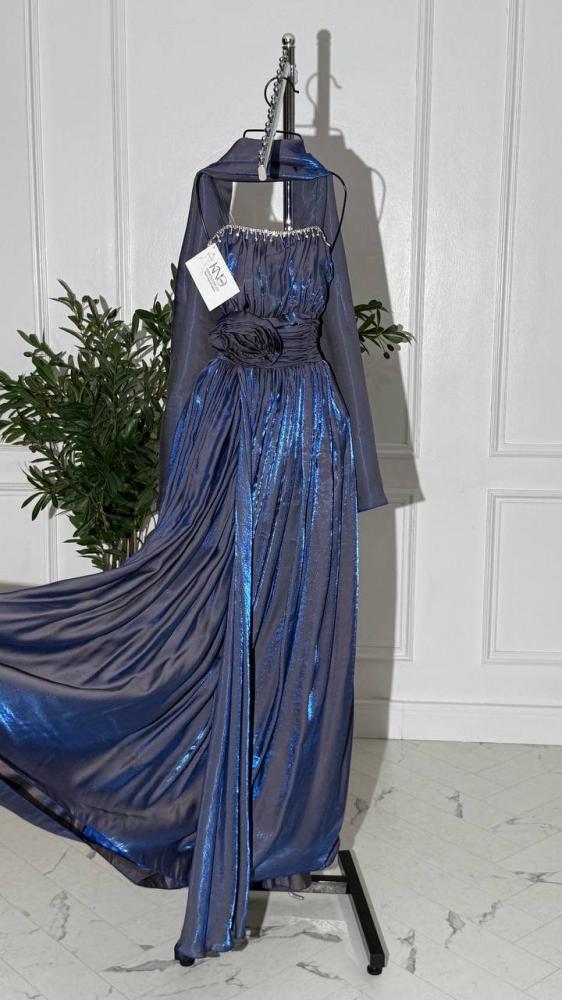 فستان ازرق كرنكل وردة بكريستالات فاخرة أنيقة