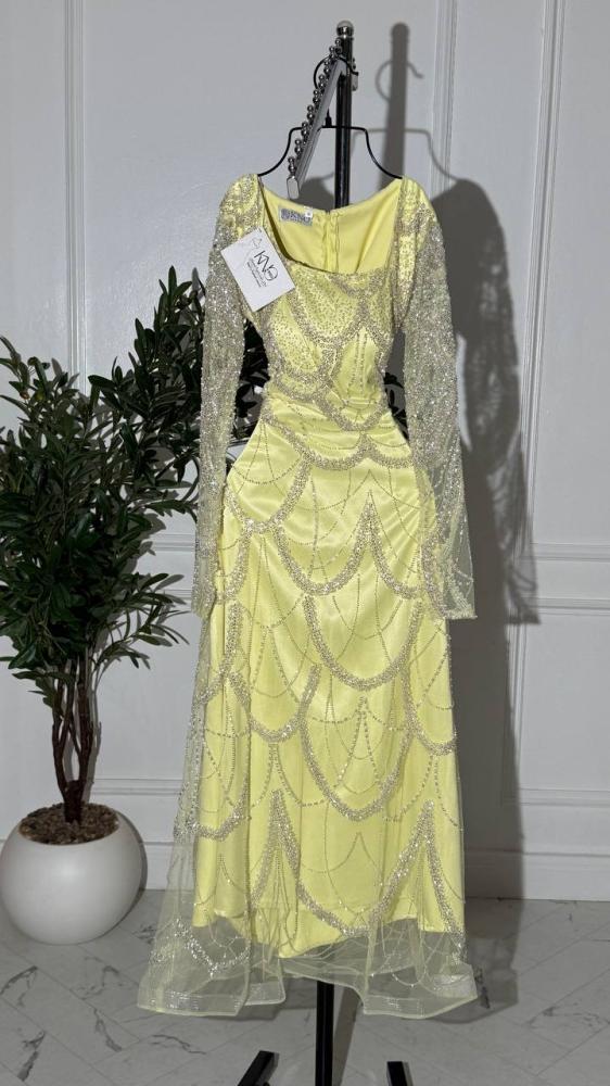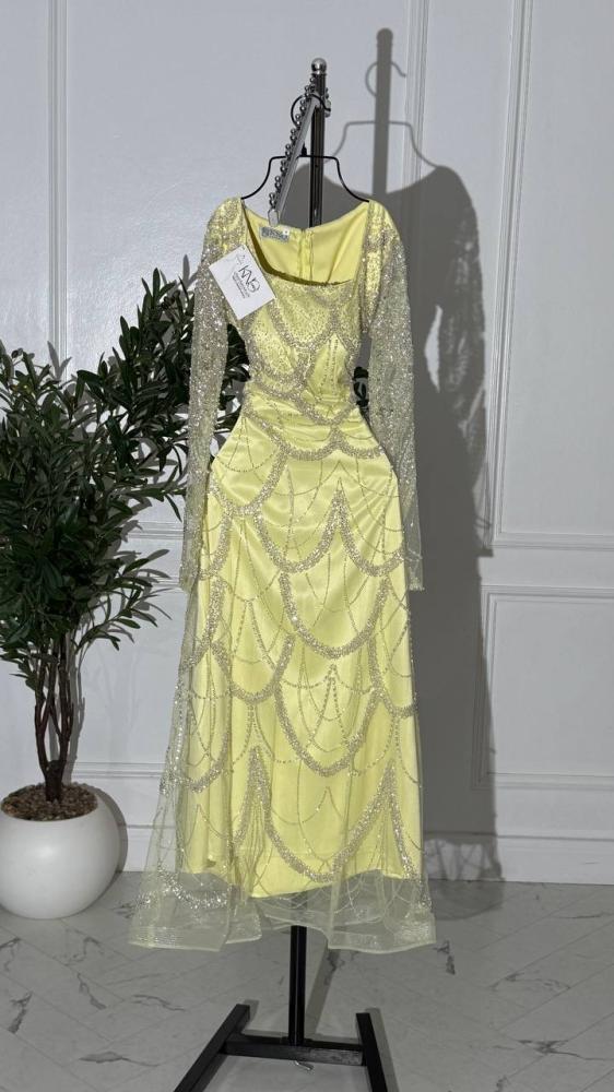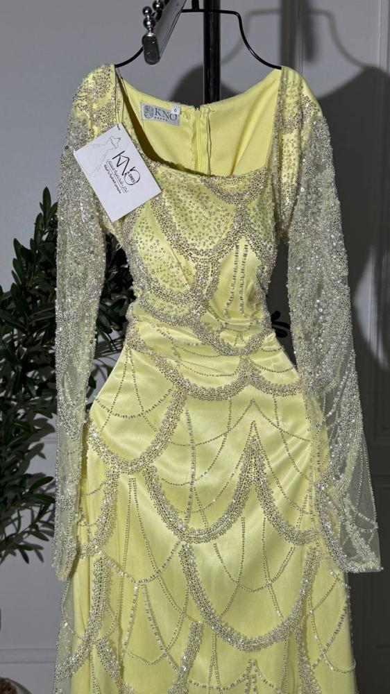 • فستان فاخر بتصميم أنيق مصنوع من خامة سلاسل شك لامعة تنسدل برقي فوق طبقة من التفته الفاخرة، ليمنح إطلالة تجمع بين الفخامة والأنوثة بأسلوب راقٍ ولا
