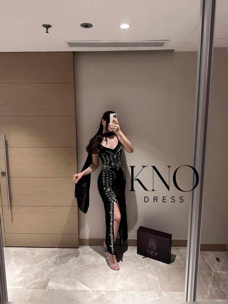 الفستان بطول 58 إنش بتصميم باربي أنثوي فاخر يبرز جمال القوام. التطريز اليدوي المباشر يمنح الفستان تفاصيل متقنة ذات جودة عالية، بينما يضيف الشال المصنوع من شيفون جورجيت لمسة من الانسيابية والنعومة ليكتمل التصميم بإطلالة متوازنة بين الرقي والجاذبية.