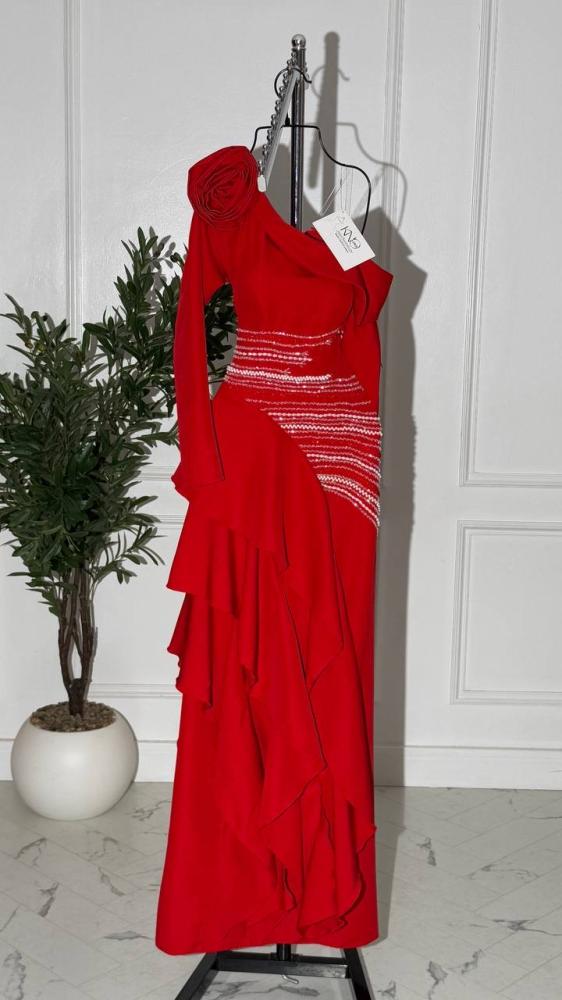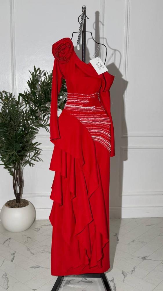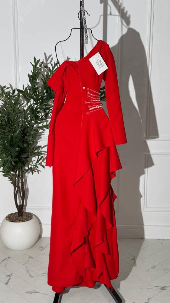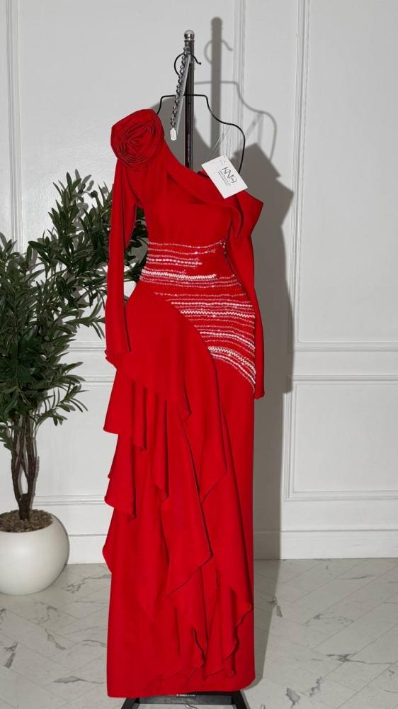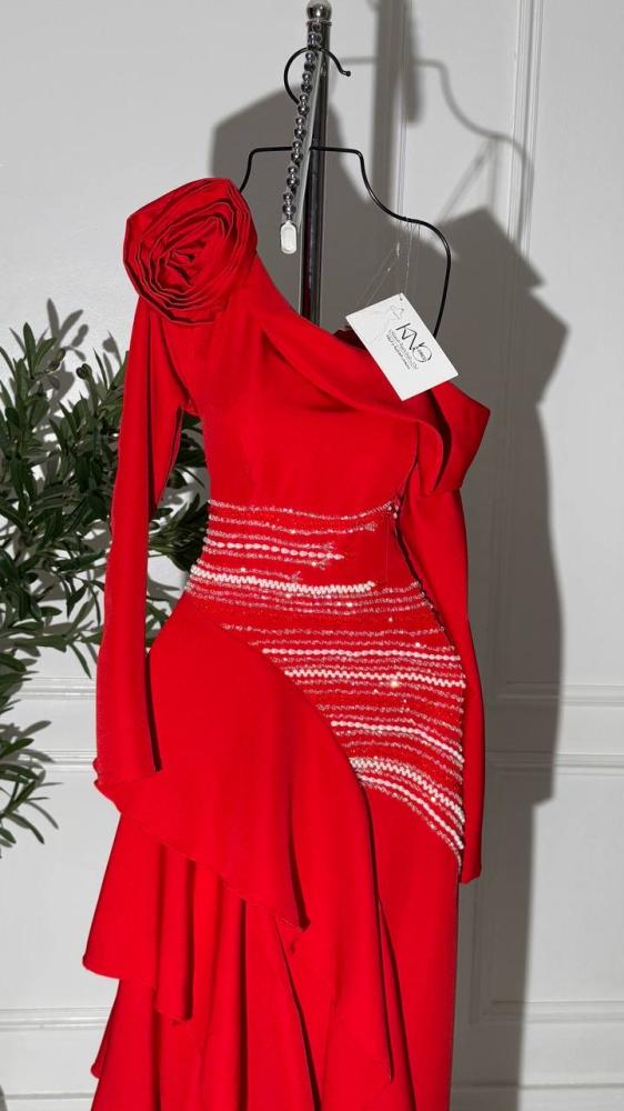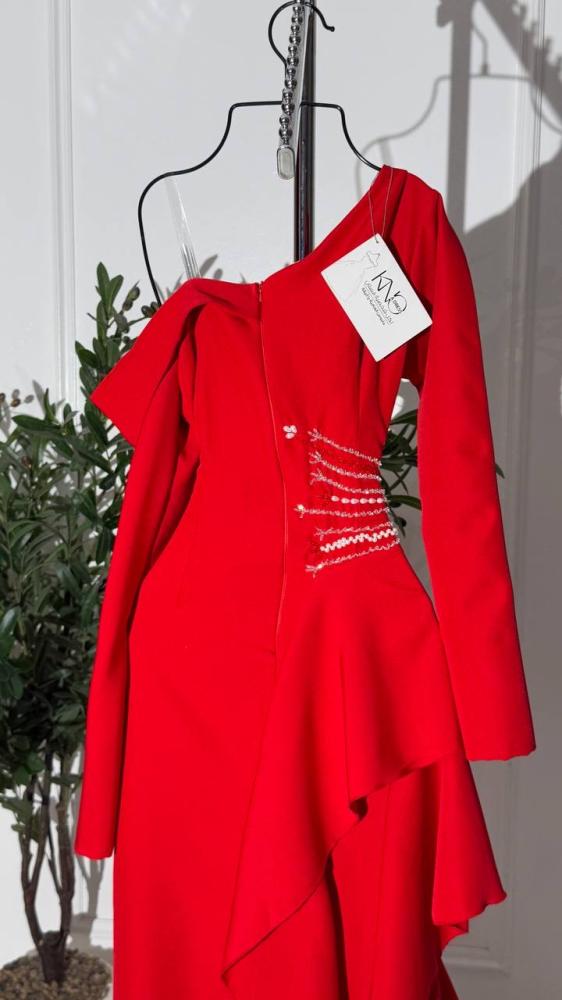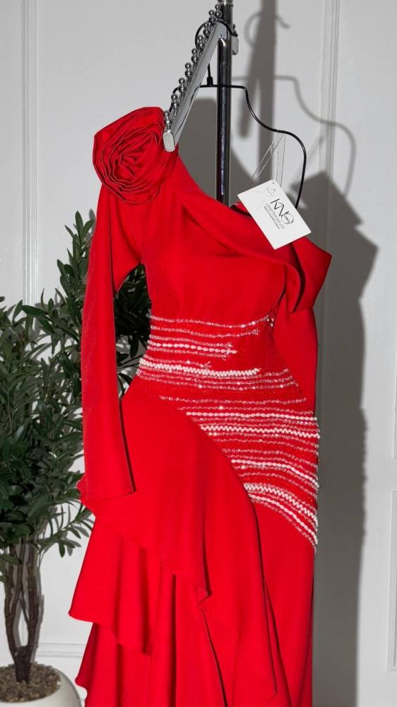 • فستان أنيق من خامة الباربي الفاخرة، يزدان بتطريز يدوي مباشر يبرز تفاصيل الورود بدقة متناهية، ليجمع بين الفخامة والأنوثة في تصميم راقٍ يناسب الإطلالات المميزة والمناسبات الخاصة