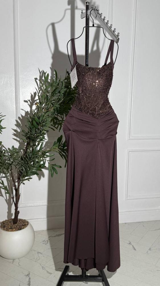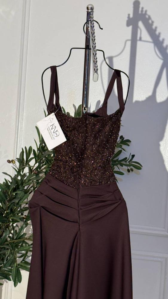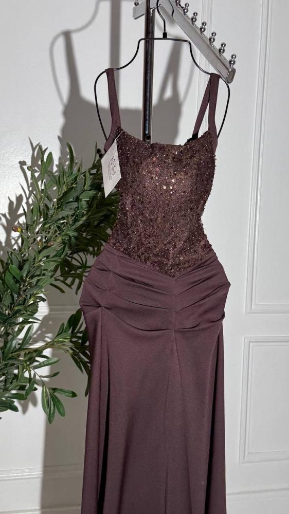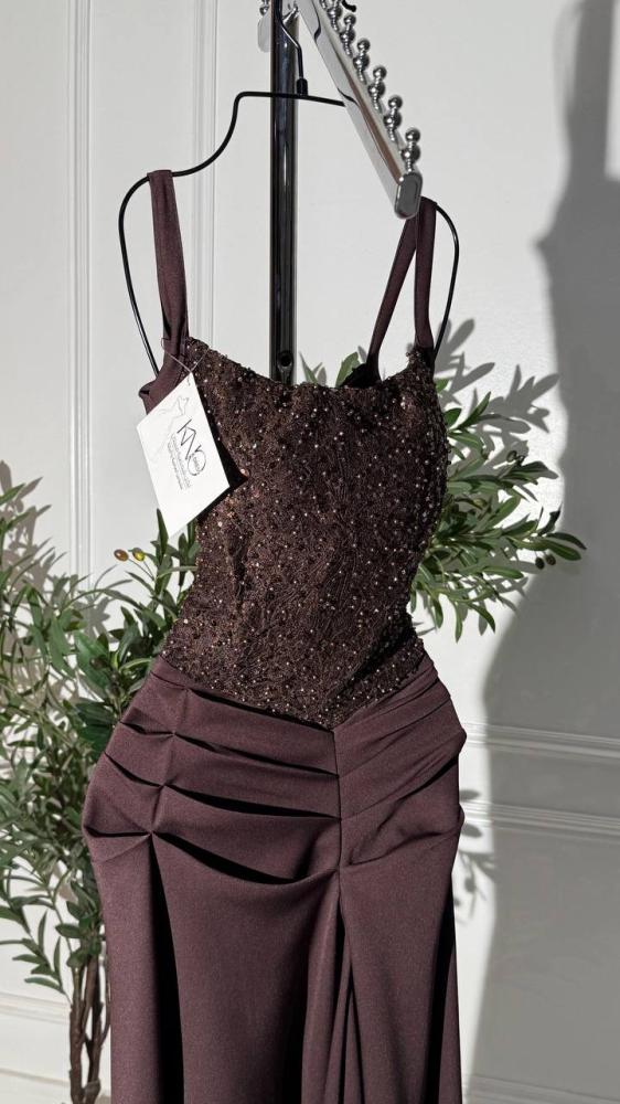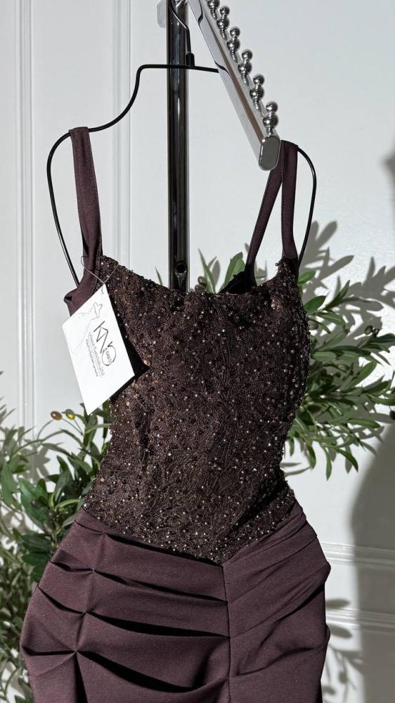 فستان باربي بني بدانتيل كردانة فاخرة.