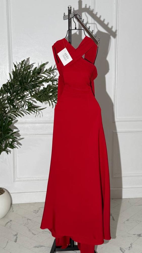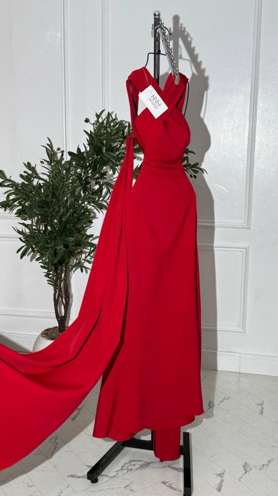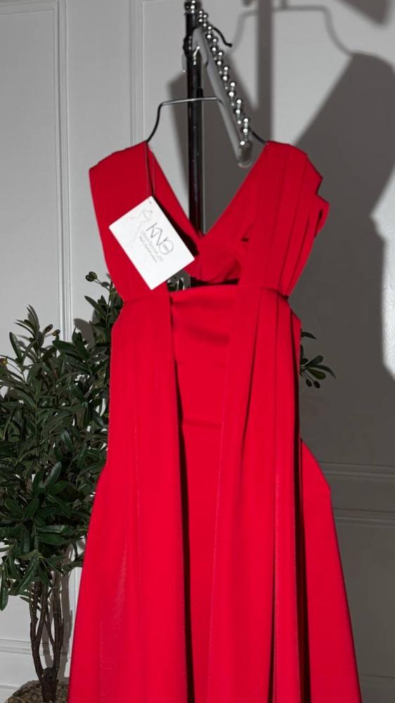 فستان باللون الأحمر الفاخر الذي يعكس القوة والجاذبية، صُمم بخطوط عصرية وانسيابية أنيقة لتجدي فيه توازناً مثالياً بين الرقي والفخامة.