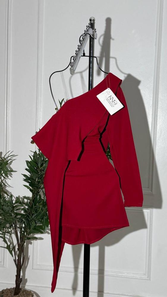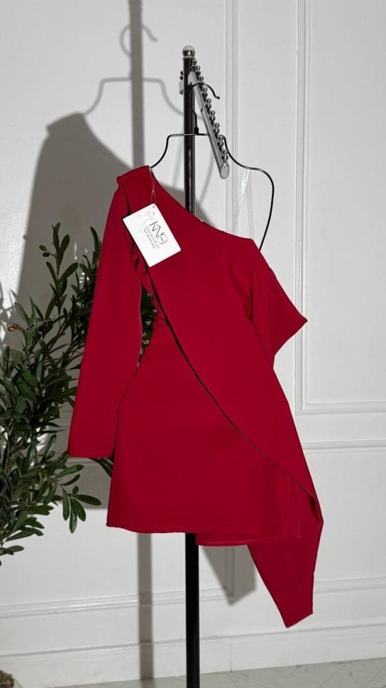 • فستان أنيق من خامة الباربي الفاخرة، بتصميم عصري غير متماثل بكتف واحد وقصّة قصيرة تضيف لمسة جاذبية وأنوثة. يتميز بامتداد جانبي طويل من القماش يمنح انسيابية وأناقة لافتة، مما يجعله خيارًا مثاليًا للسهرات والمناسبات المميزة