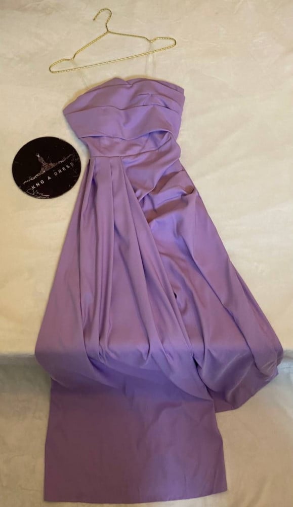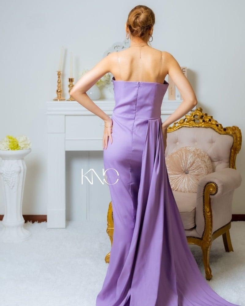 فستان انيق بقصة طويلة و ذيل جانبي .