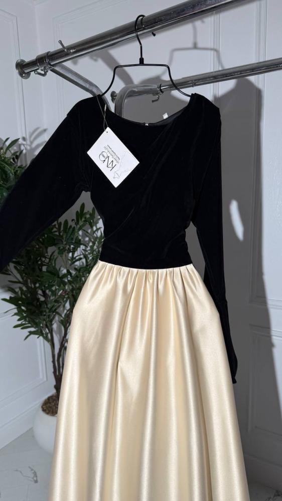 فستان بطول 54 إنش مصنوع من قماش الجوخ الثقيل والفاخر، يمنحه مظهرًا دافئًا وأنيقًا، مع لمسات من التفته تضيف لمعة خفيفة ونعومة في التفاصيل. التصميم يتميز بقصة انسيابية تجمع بين البساطة والفخامة