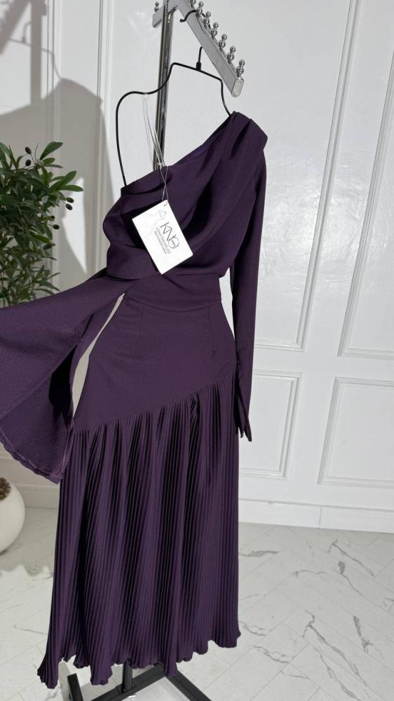 إطلالة أنيقة تعكس الفخامة والرقي مع هذا الفستان البنفسجي الداكن المصمم بعناية لكل امرأة تبحث عن التميز. يتميز بقصة جذابة من على الكتف تمنحك لمسة أنثوية راقية، بينما تضيف الكسرات السفلية حركة انسيابية ساحرة. بفضل قماشه الفاخر من الباربي والبوليسيه، ستحصلين على إطلالة تخطف الأنظار في كل مناسبة.