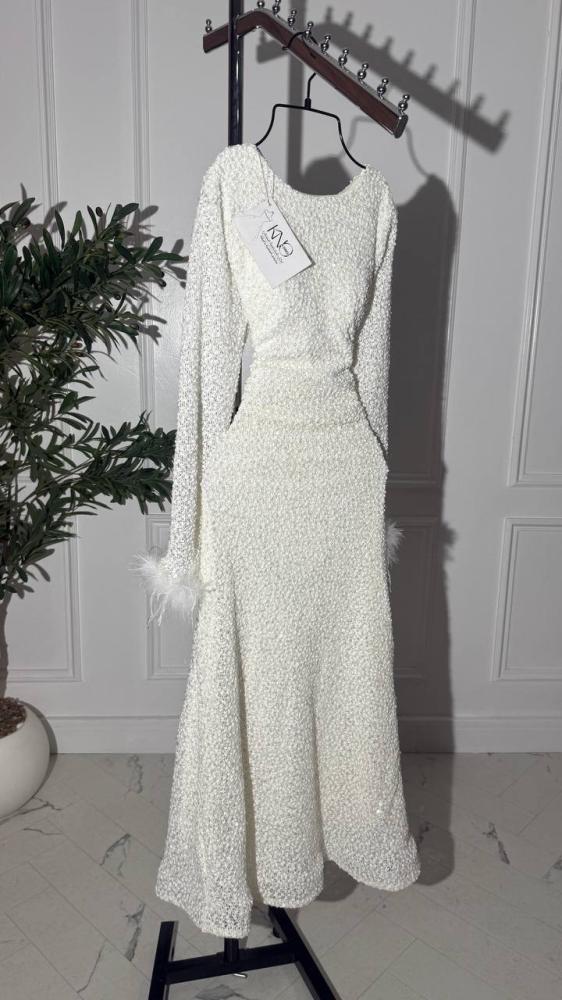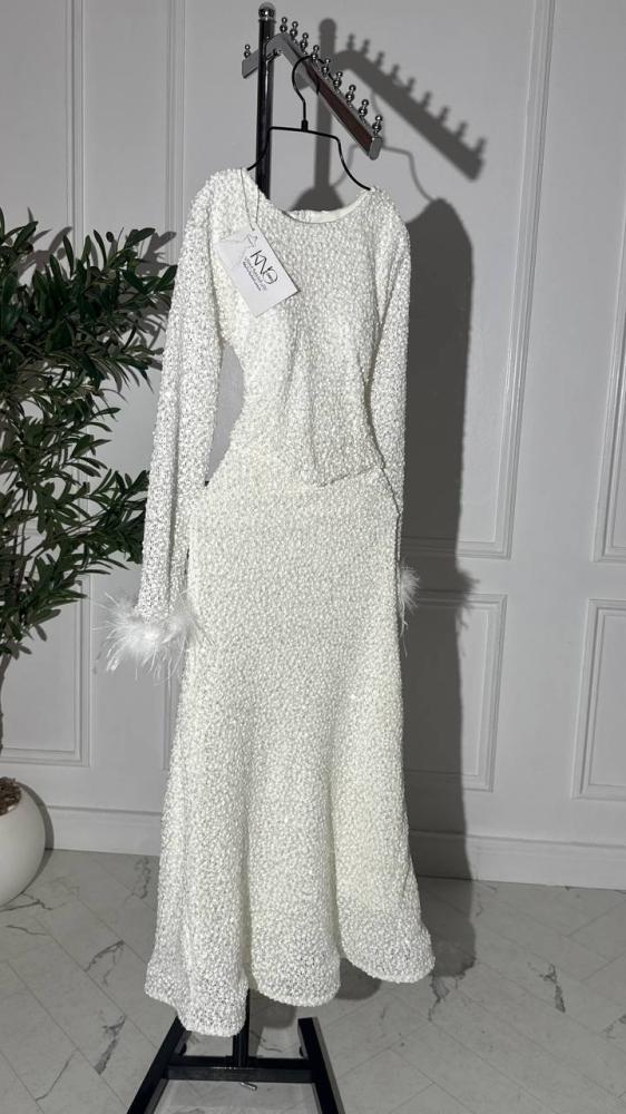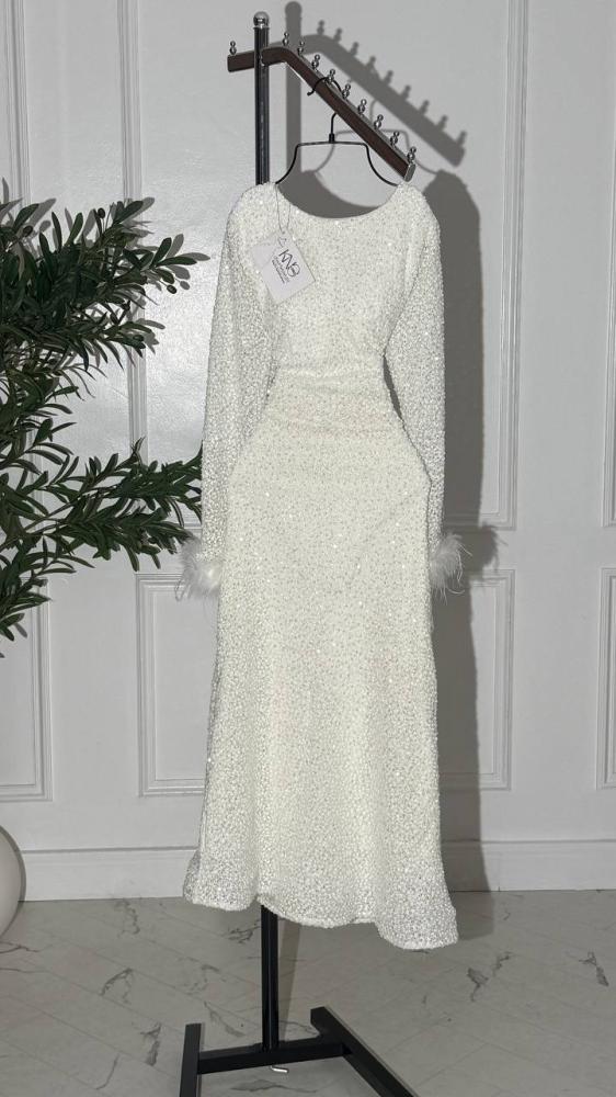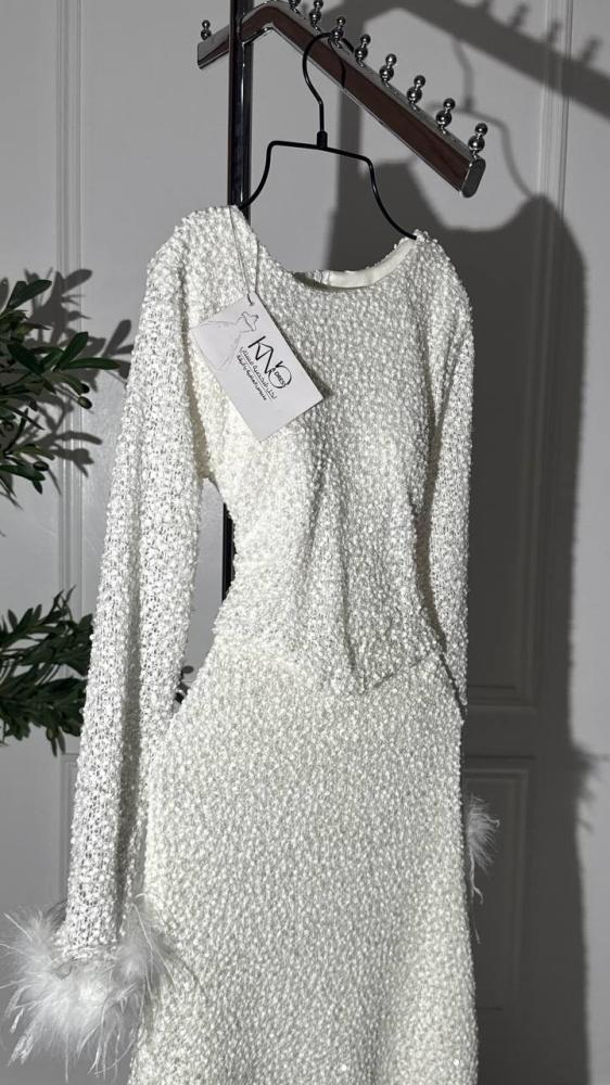 فستان ترتر مع اكمام طويله بأطراف ريش