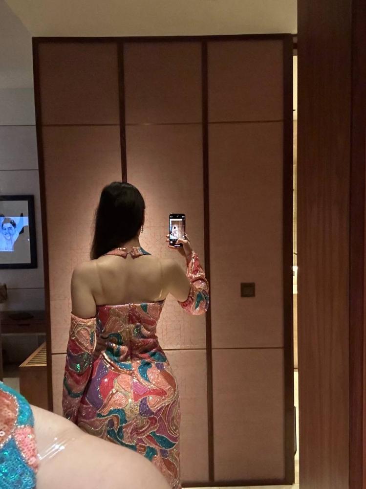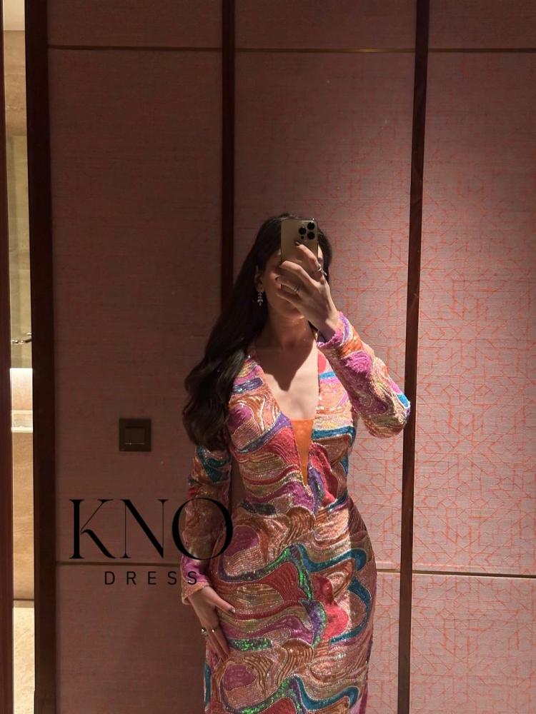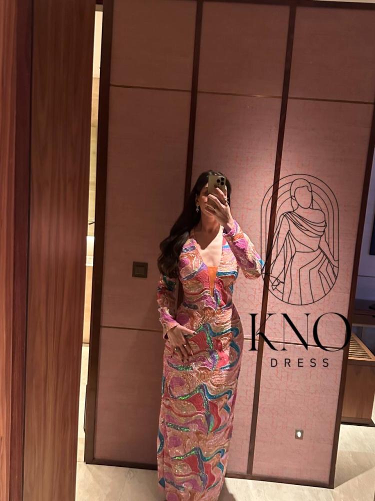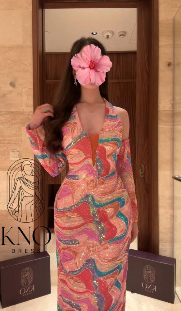 • فستان فاخر بتصميم أنيق مصنوع من خامة الترتر المموج اللامع، يمتاز بقماشه الاسترتش الخاص الذي يمنح انسيابية جذابة ويبرز القوام برقي، تفصيله المتقن ولمعانه الفاخر يضفي لمسة فخمة تلفت الأنظار في كل مناسبة