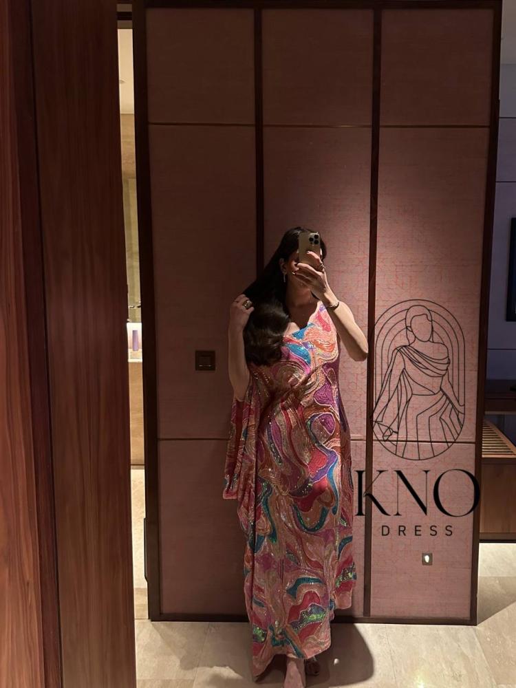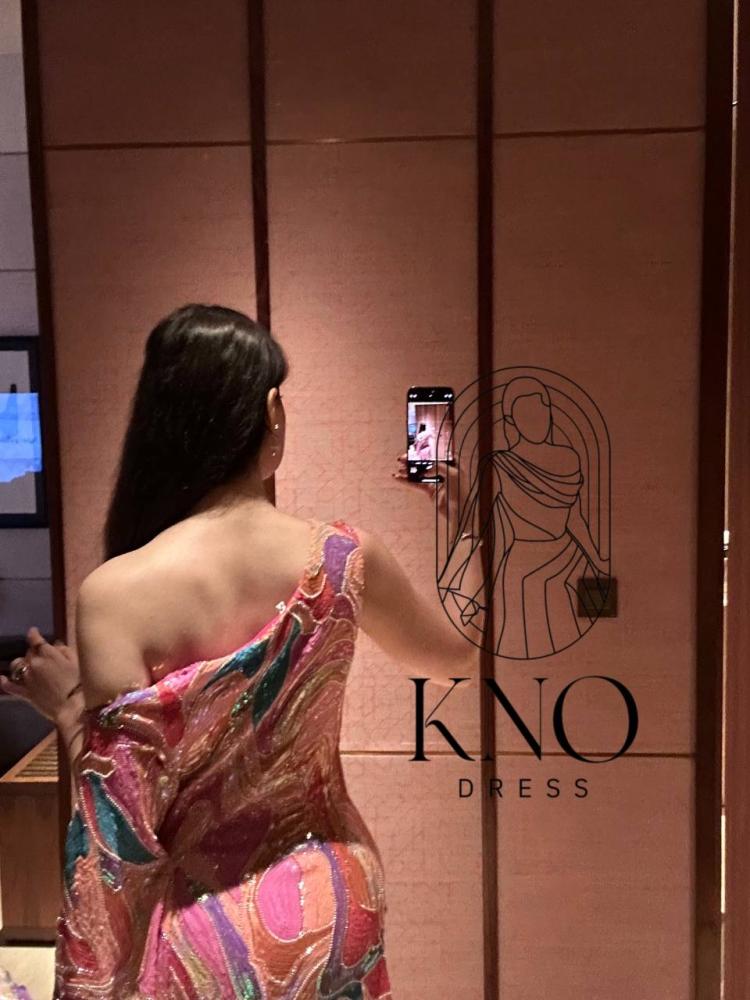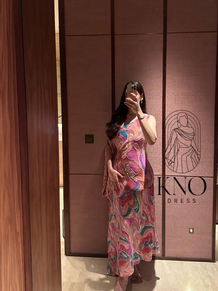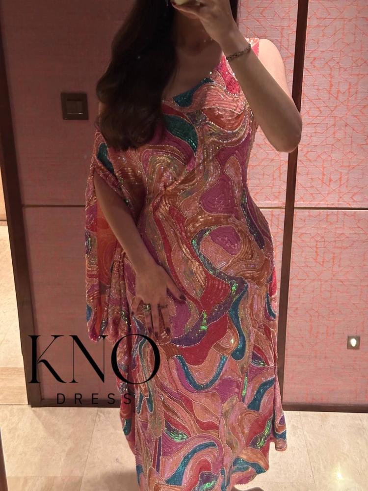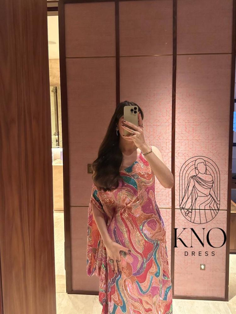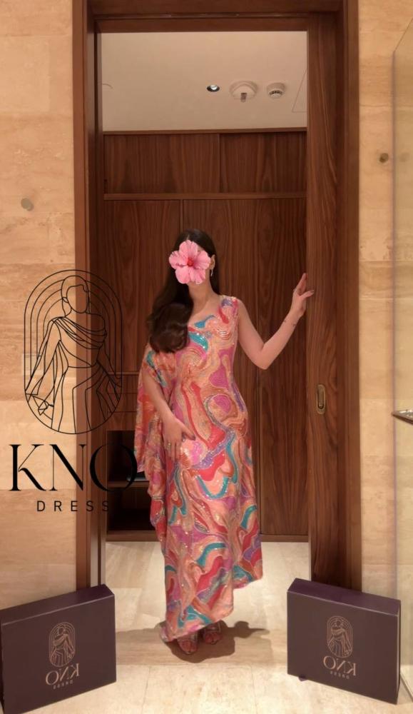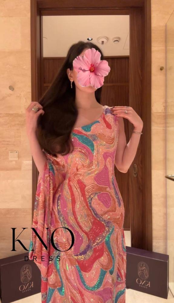• فستان فاخر بتصميم أنيق من خامة الترتر المموج الفاخر، يمتاز بقماشه الاسترتش الخاص الذي يمنح القوام انسيابية وجاذبية مميزة، مع لمعة براقة تضفي لمسة فخمة تناسب السهرات والمناسبات الراقية