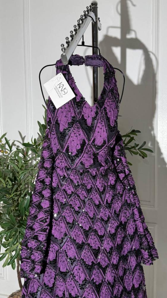 • فستان أنيق من خامة التل الناعمة، مزين بشك فاخر يضيف لمسة من الفخامة والرقي. يتميز بتصميمه الأنثوي الذي يجمع بين البساطة والتفاصيل اللامعة التي تبرز جمال القماش وتضفي على الإطلالة سحرًا خاصًا يناسب المناسبات الراقية