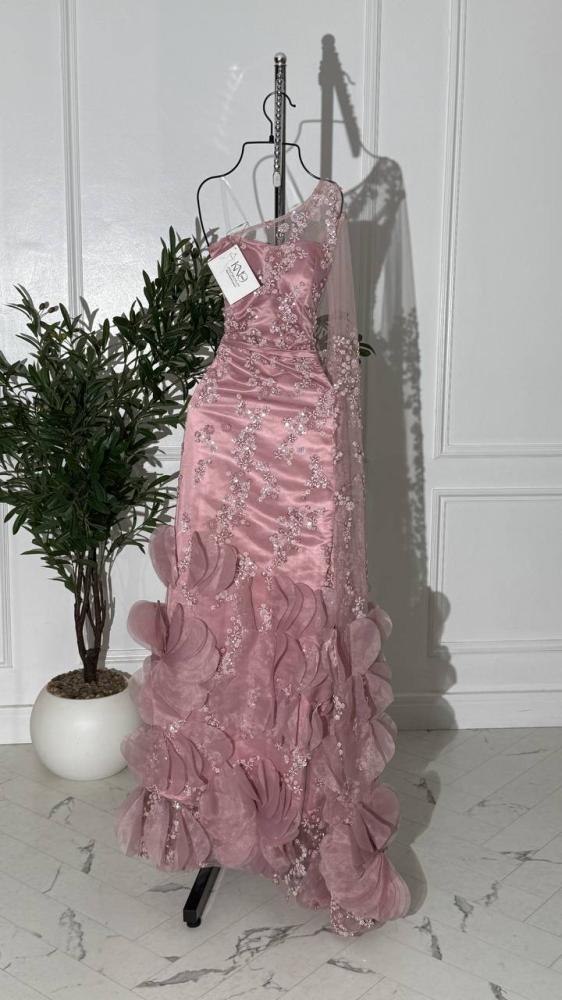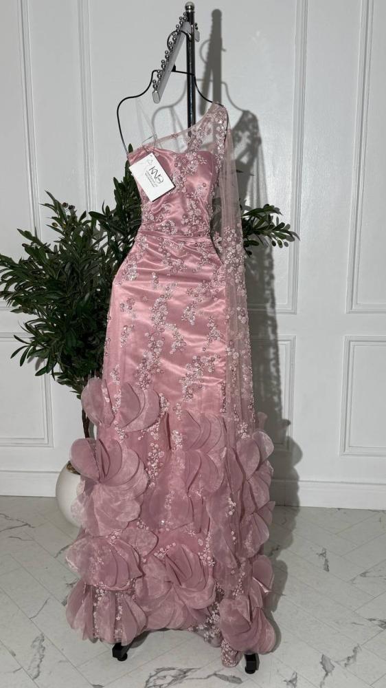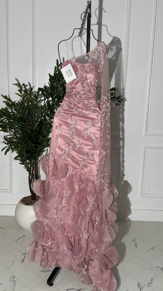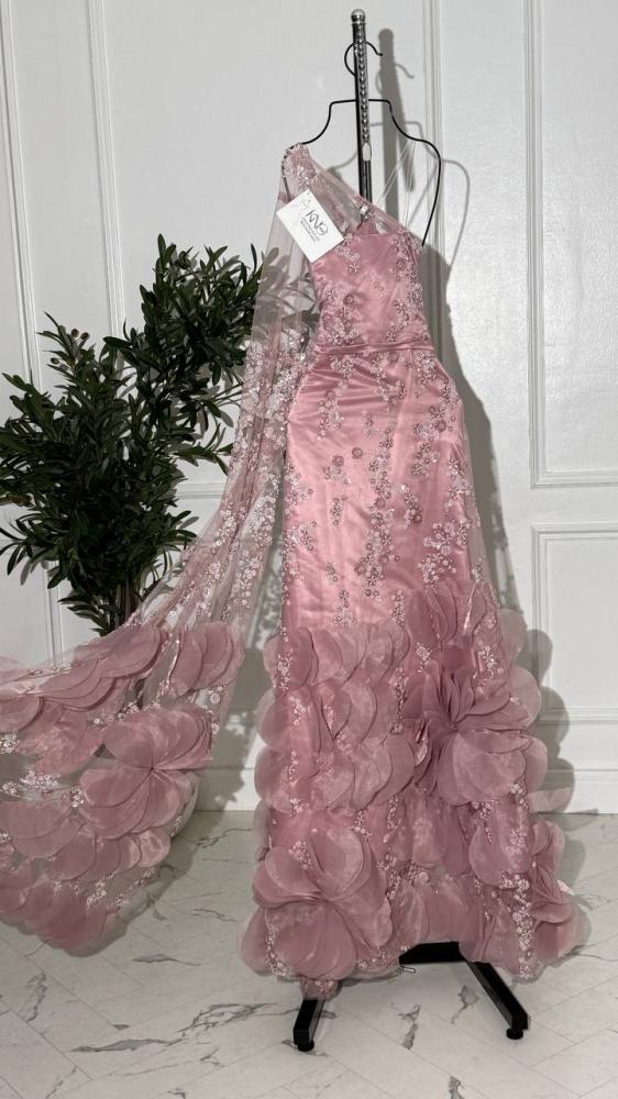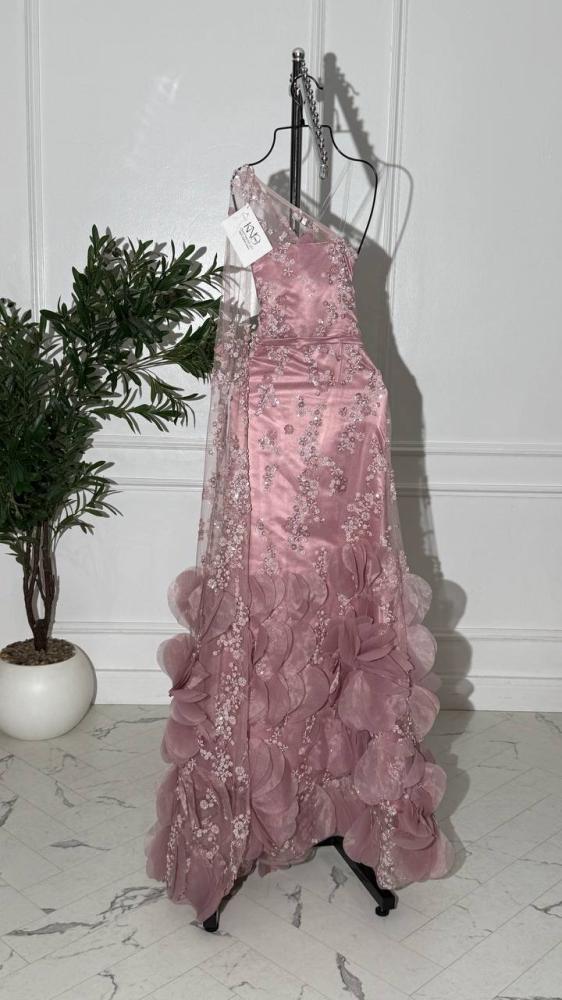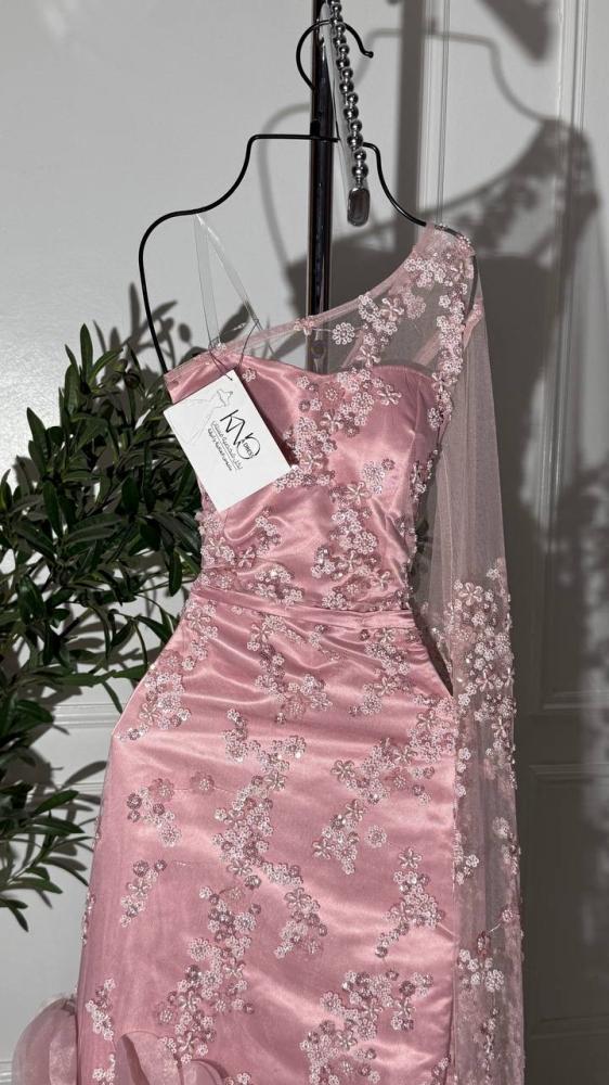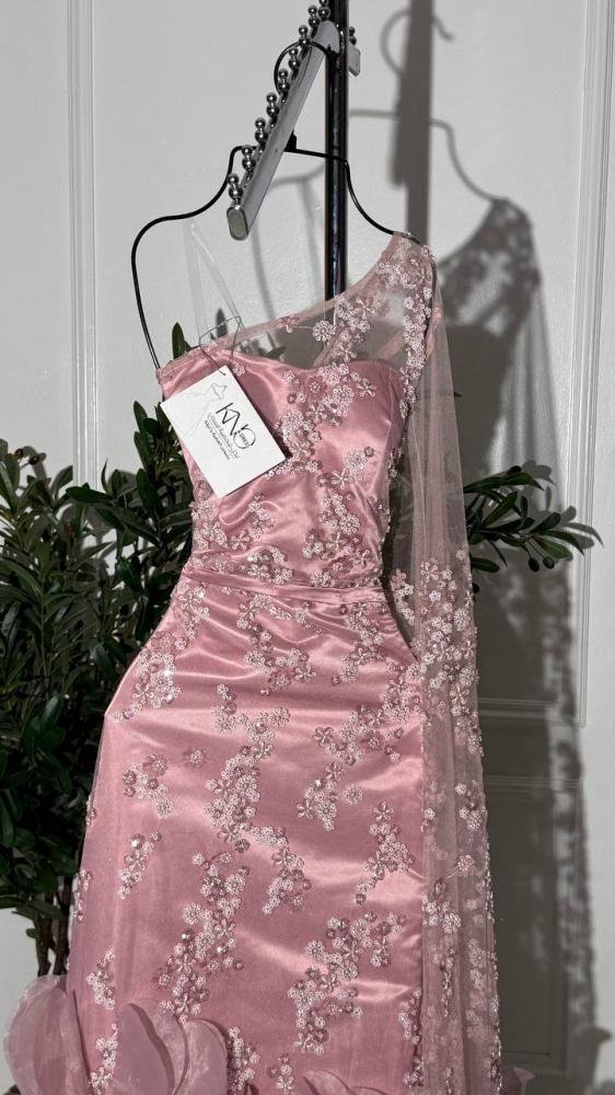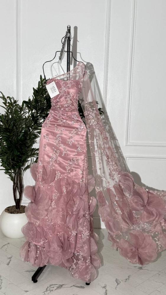 • فستان أنيق مصنوع من خامة التل الناعمة الممزوجة بتطريز شك فاخر مع تفاصيل ورود مقطوعة بالليزر، ليمنح إطلالة ساحرة تجمع بين الرقي والفخامة، حيث يلتقي الشفافية الحالمة للتل مع بريق الشك ودقة تصميم الورود في لوحة فنية متكاملة