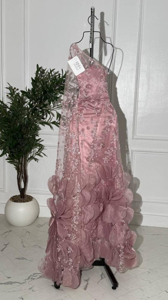 فستان تل مع شك فاخر وزينة ورود ليزر