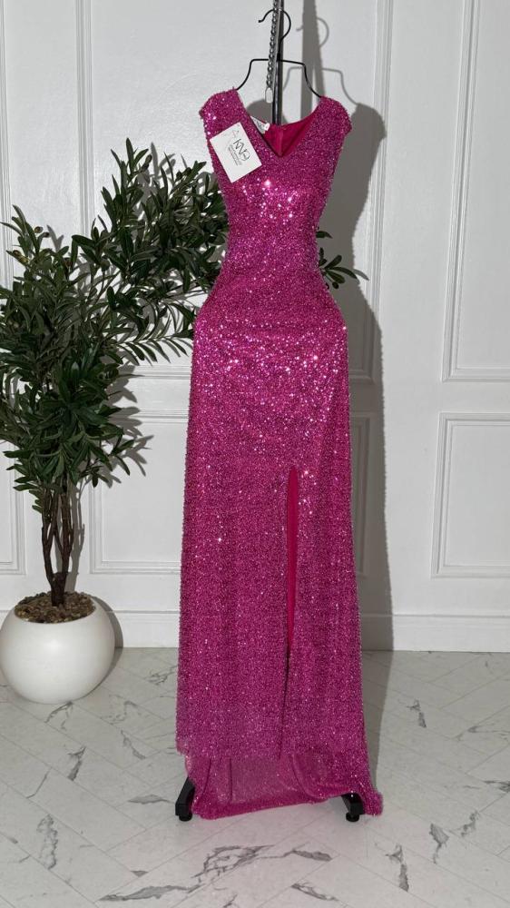 • فستان فاخر مصنوع من خامة خَرَز مكثف بتصميم أنيق يبرز الفخامة والرقي، يتميز بثقله المترف وتفاصيله الدقيقة التي تعكس جودة عالية في التنفيذ. مُبطن بتفته ناعمة تمنح الفستان قوامًا متماسكًا ولمسة فاخرة تجعل الإطلالة ملوكية بكل معنى الكلمة