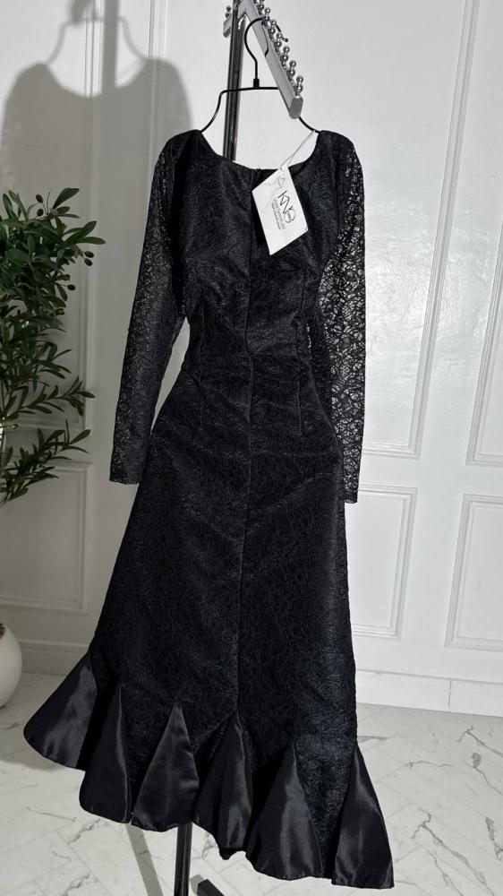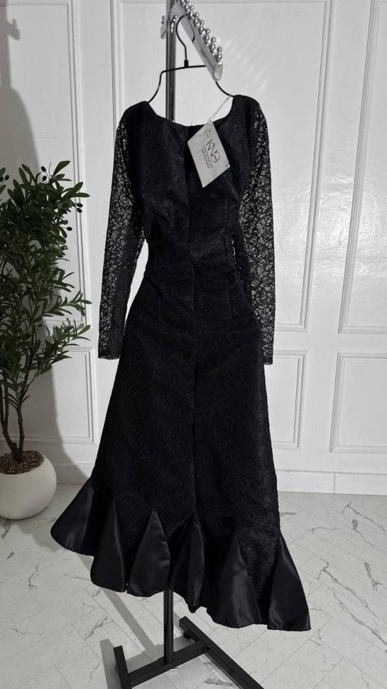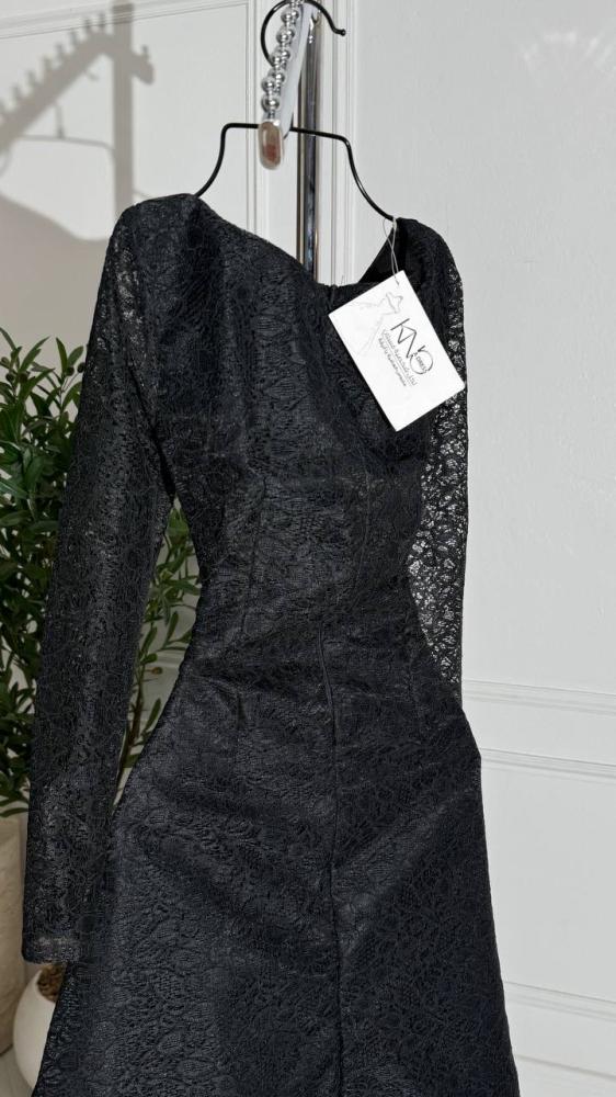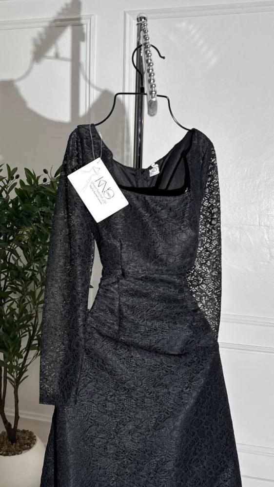 فستان دانتيل اسود بأكمام طويلة لكل المناسبات