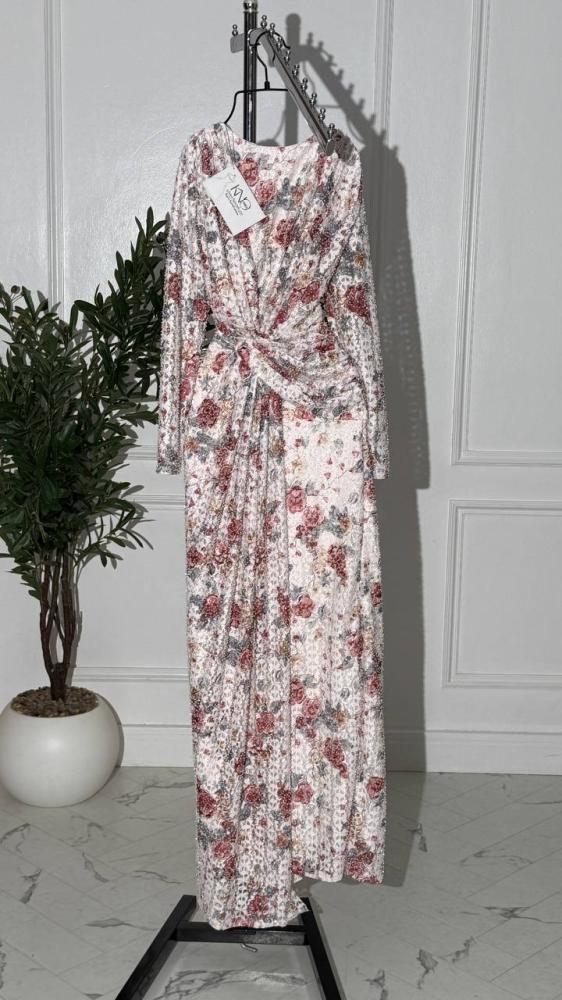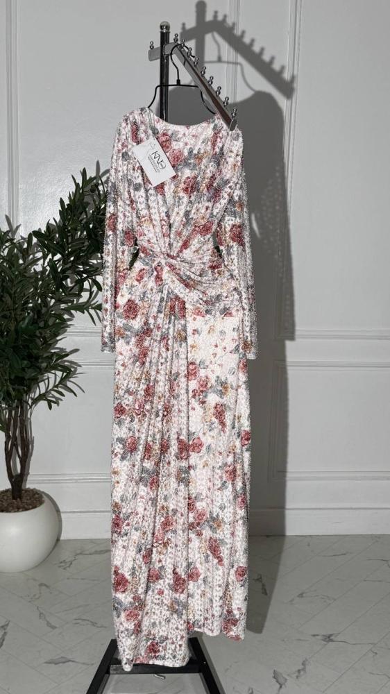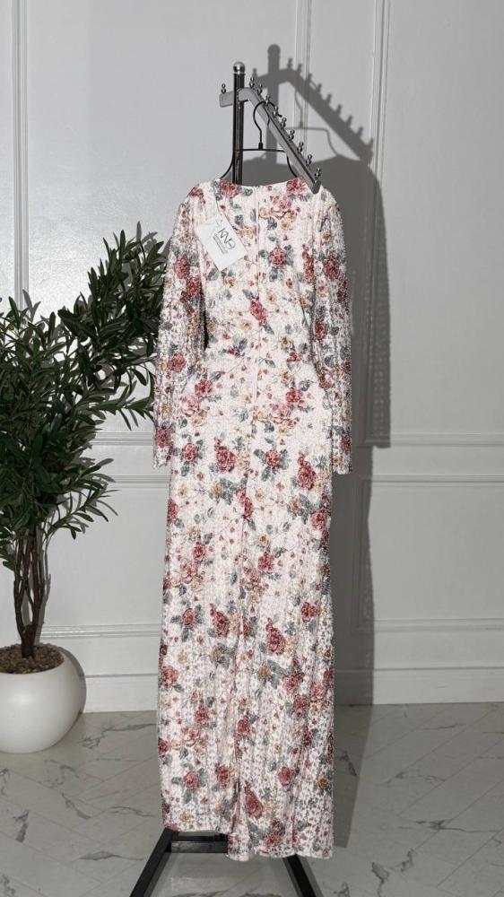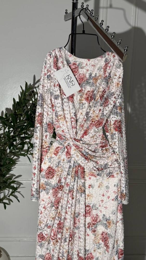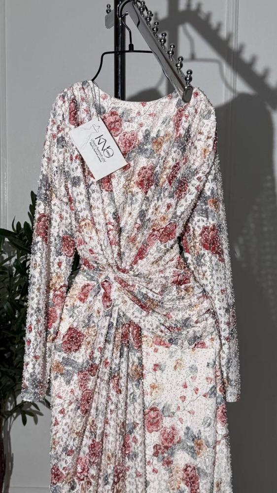 • فستان أنيق مصنوع من دانتيل استرتش فاخر مزين بفصوص براقة تضفي لمسة من الفخامة والرقي. التصميم متقن التفاصيل ليبرز جمال القصة ويمنحك إطلالة ساحرة وجذابة في كل مناسبة