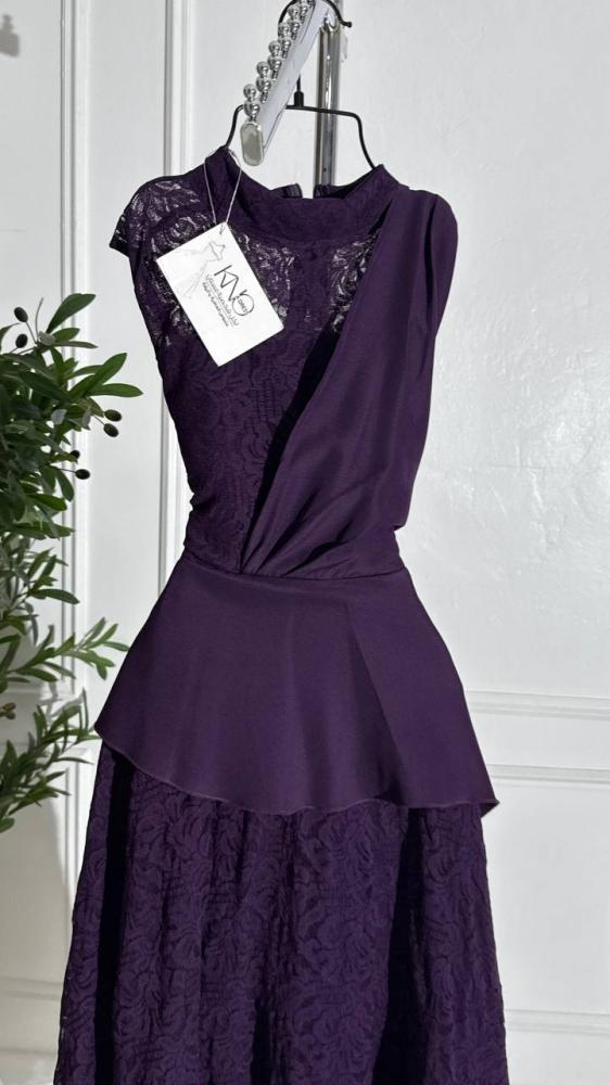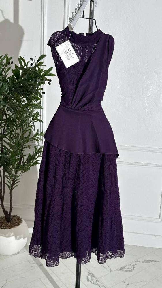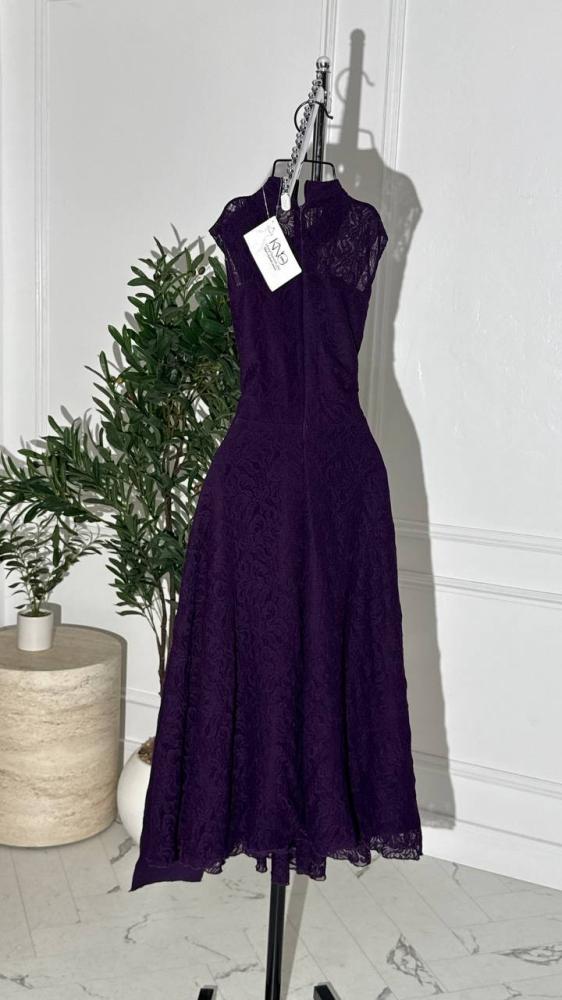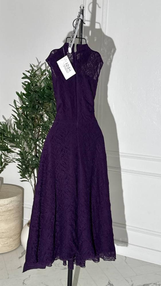فستان دانتيل برقبه ضيقه بلا اكمام