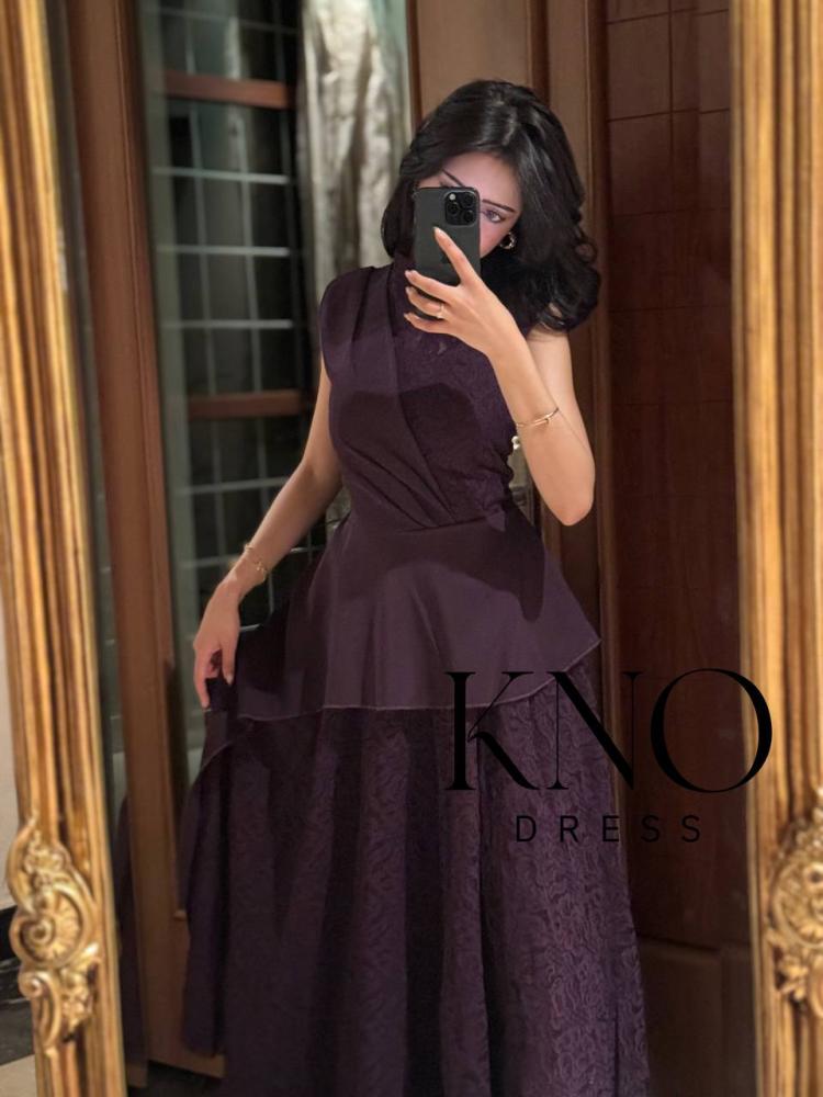 التصميم: يتميز بقطعة خارجية من قماش الباربي تضيف لمسة عصرية وانسيابية على منطقة الخصر والصدر، مما يبرز القوام بشكل أنثوي أنيق