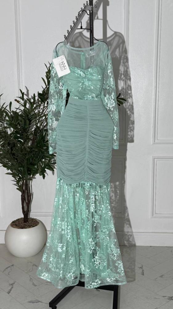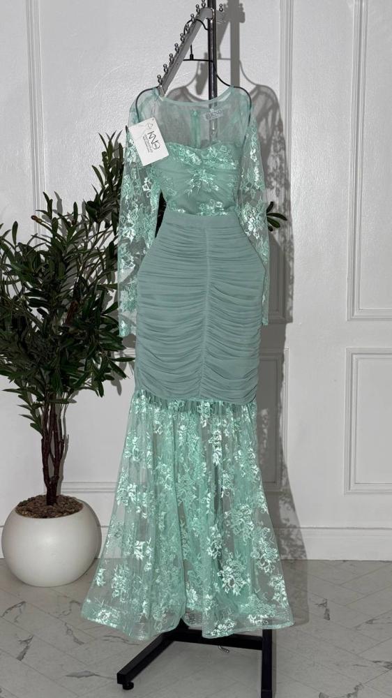 • فستان أنيق مصنوع من خامة الدانتيل الفاخرة مع لمسة من الجورجيت المكرمش، يمنح إطلالة ناعمة وأنثوية تجمع بين الفخامة والرقي. يتميز بتفاصيله الراقية التي تضيف عمقًا وأناقة على التصميم، مما يجعله خيارًا مثاليًا للمناسبات المميزة والسهرة الأنيقة