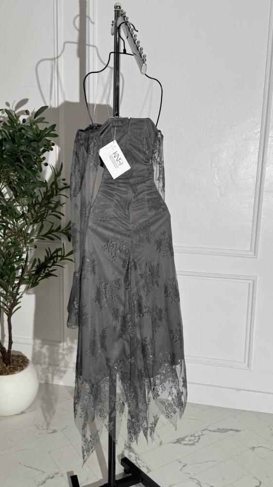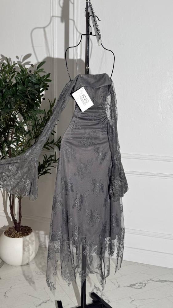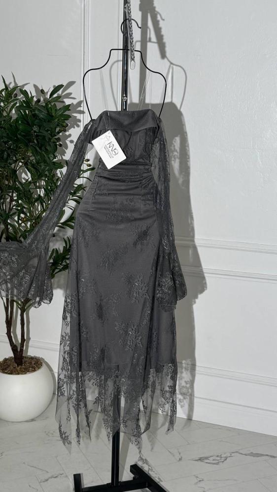 فستان رمادي داكن بقماش الدانتيل
