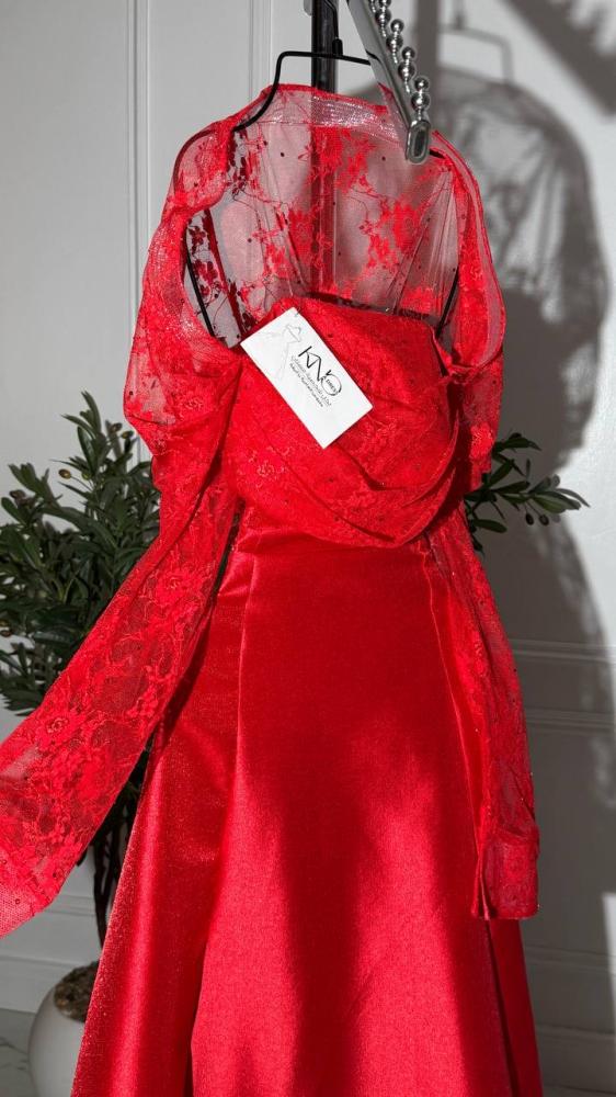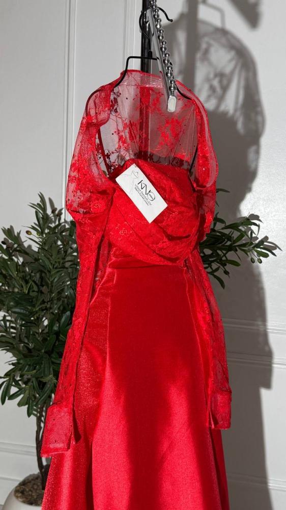 استمتعي بأناقة لا مثيل لها مع فستان روسي أحمر أنيق مزين بدانتيل فاخر. يجمع بين الخامة الروسية الراقية وتفاصيل الدانتيل الساحرة ليمنحك حضوراً آسراً وإطلالة تلفت الأنظار في كل مناسبة مميزة.