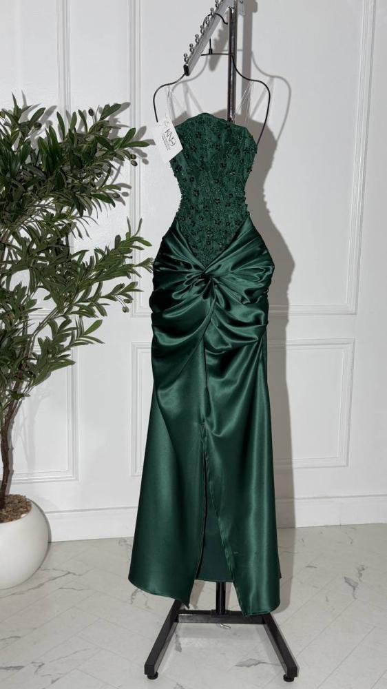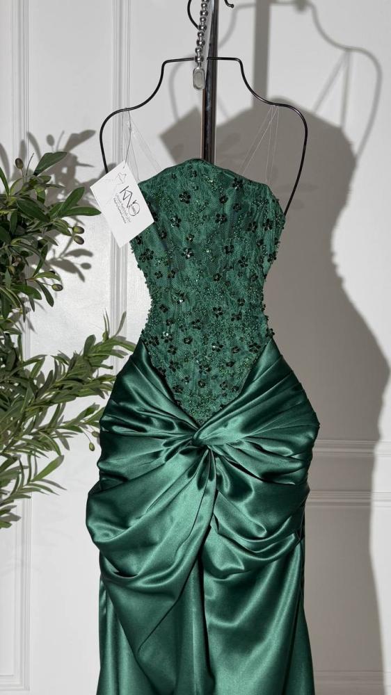 الطول والتصميم: فستان فاخر بطول 60 إنش يمنح إطلالة ملوكية، مصمم بكورسيه يحدد الخصر ويبرز القوام بأنوثة وأناقة.