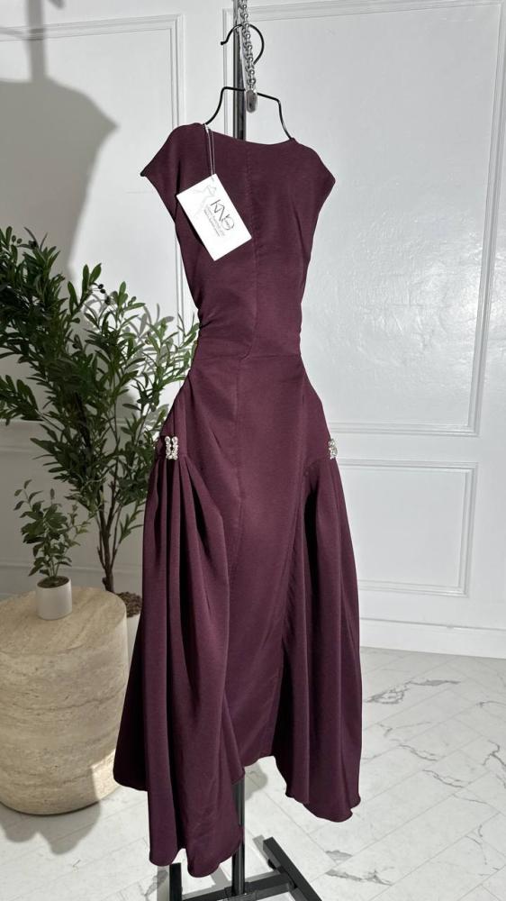 فستان ساده ناعم بتفاصيل جانبيه بدون أكمام بتصميم راقي