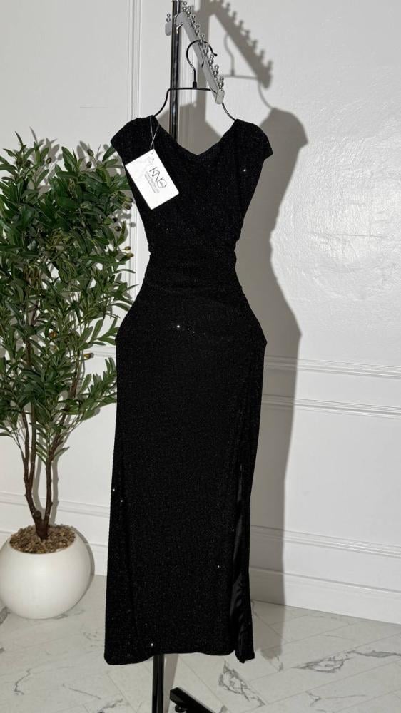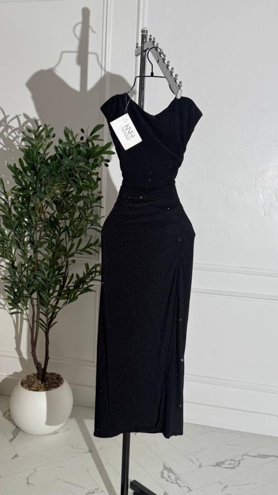 تألقي بإطلالة ساحرة مع هذا الفستان الأسود الناعم اللامع، المصمم ليبرز أناقتك ويضفي لمسة من الفخامة على إطلالتك في المناسبات الخاصة.
