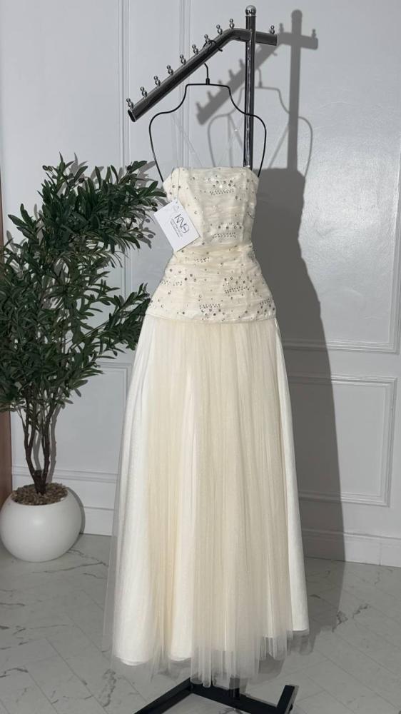 فستان سهرة ب تل تايواني مبطن مع تطريز