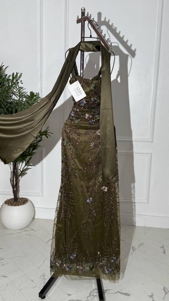 مواصفات فستان سهرة مطرز بالخزر والورود الملونة:
