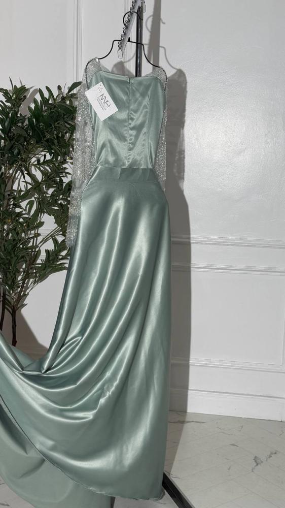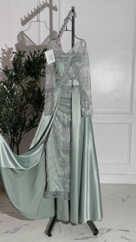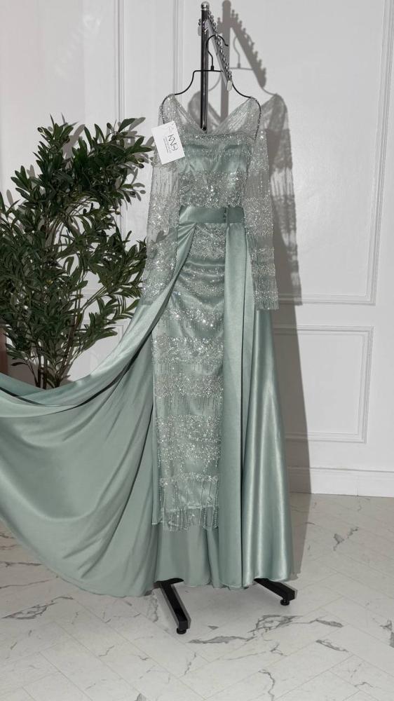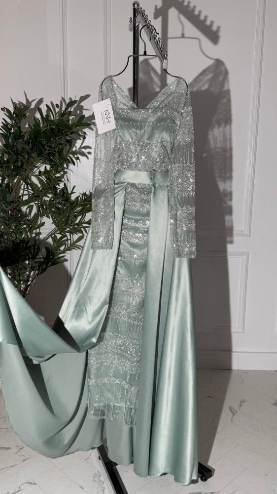 التصميم: فستان أنيق بأكمام طويلة يمنح إطلالة راقية ومحتشمة، مثالي للسهرات والمناسبات الفخمة.