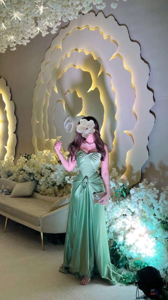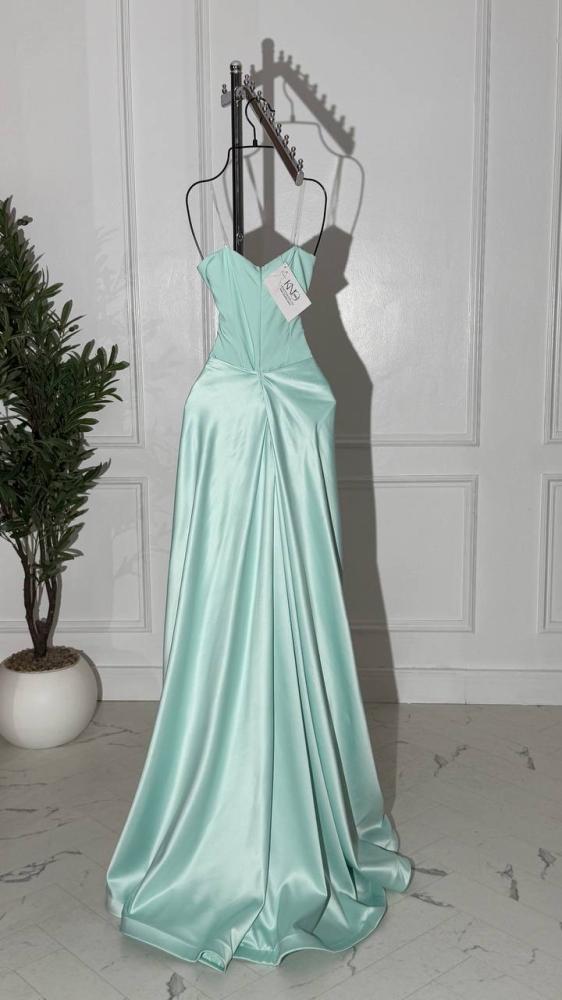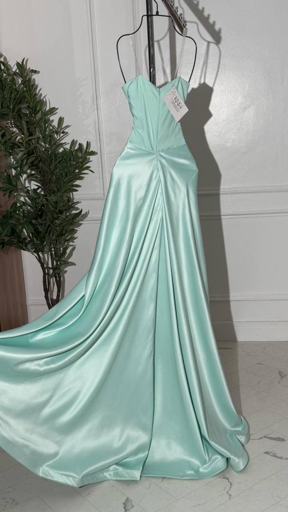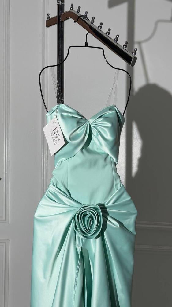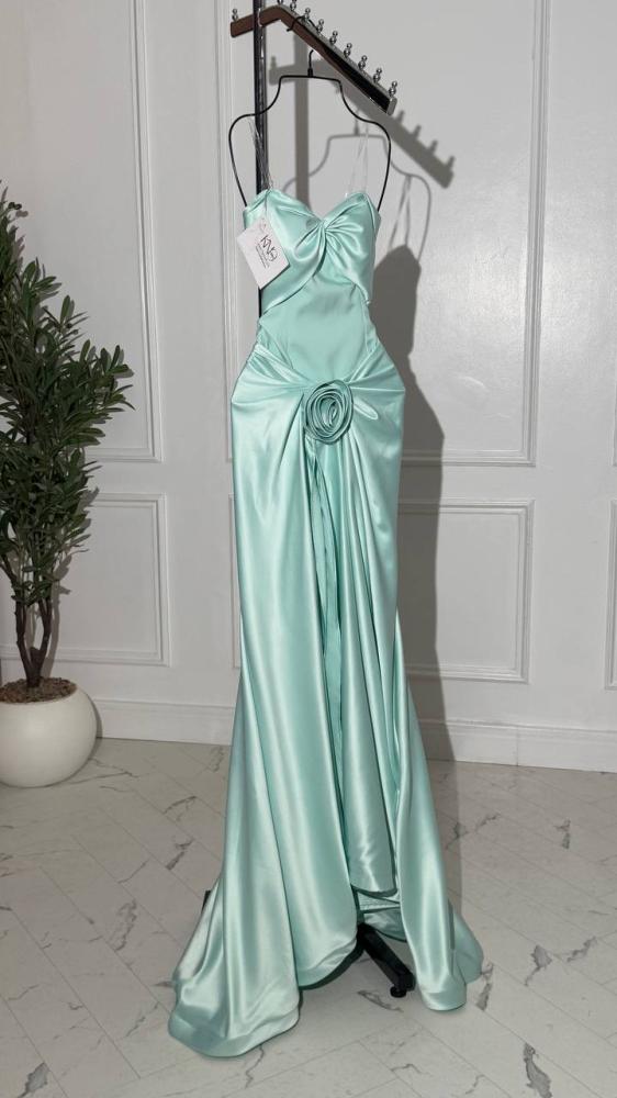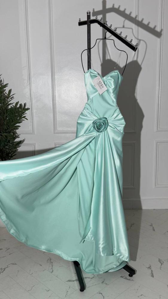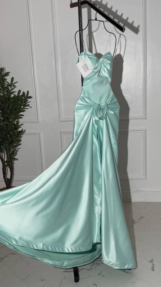 فستان سهرة طويل بدون اكمام مع وردة