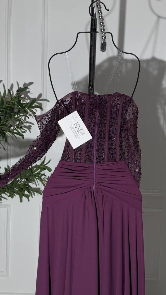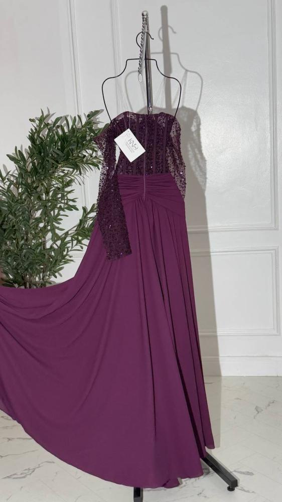 فستان سهرة طويل مع اكمام مطرزة