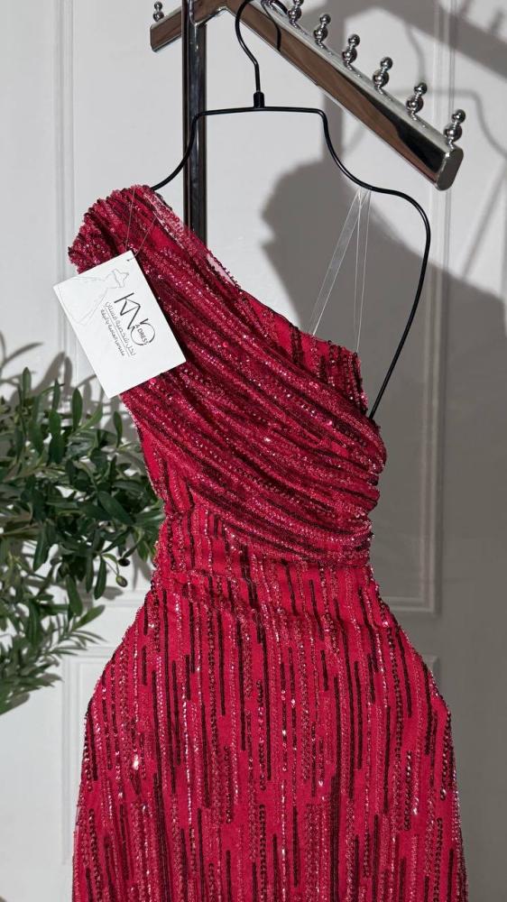 هل تبحثين عن فستان يُبرز أنوثتك بتصميم مختلف ولمسة فاخرة؟ ودّعي الإطلالات التقليدية مع فستان سهرة كتف واحد بلونه العودي الفخم، المصنوع من خامة شك مقلم بلمعة ناعمة تمنحك حضورًا آسرًا وأناقة متفرّدة تلفت الأنظار في كل مناسبة.
