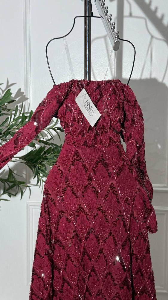 هل ترغبين بإطلالة تُبهر الجميع وتترك أثرًا لا يُنسى؟ ودّعي الإطلالات التقليدية وتألقّي مع فستان السهرة الخمري الفاخر المصنوع من كلفة دانتيل وتل بفسوص وأكمام طويلة، تصميم فستان السهرة يعبّر عن الرقي والأنوثة في كل خيط ولمسة، ليمنحك حضورًا راقيًا يخطف الأضواء في السهرات والمناسبات الفاخرة.