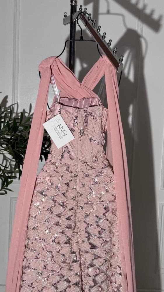 هل تبحثين عن إطلالة تجمع بين فخامة التصميم ورقة اللون؟ يقدم لكِ متجر كنو هذا الفستان الساحر، المصمم ليكون قطعة مركزية في مناسباتكِ السعيدة، حيث يجسد الأنوثة في أبهى صورها ويمنحكِ حضوراً لا يُنسى.