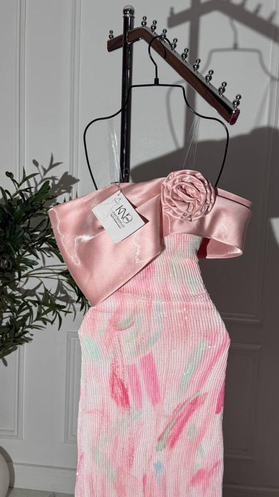 فستان سهره ترتر ملون مع ميكادو لمعة