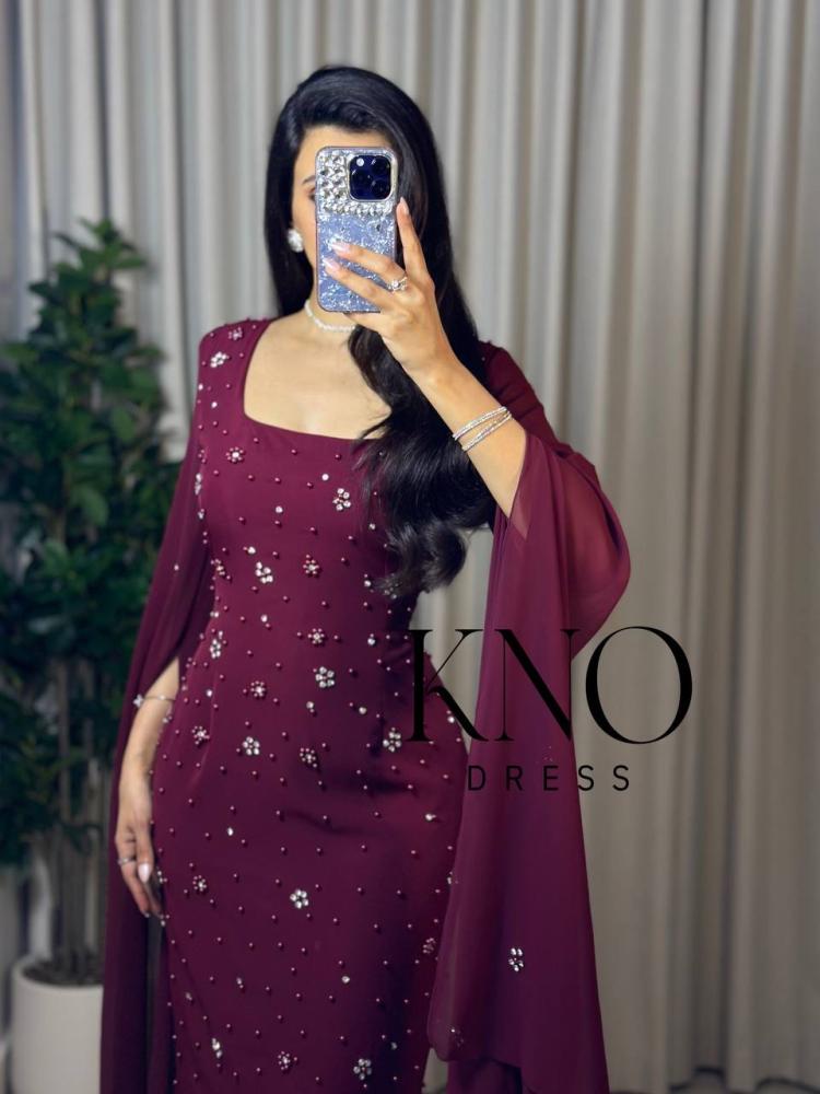 تميّزي بإطلالة آسرة بهذا الفستان الفاخر بلونه العودي العميق، المصمم بعناية ليلائم السهرات والمناسبات الخاصة. مزيج قماش الباربي الناعم والجورجيت الخفيف يمنحكِ مظهرًا راقيًا مع إحساس فائق بالراحة، بينما تبرز القصة الانسيابية جمال القوام بأسلوب أنثوي ناعم. تطريزات الفصوص واللؤلؤ المتناثرة تضفي عليه لمسة ليلية براقة تأسر الأنظار.