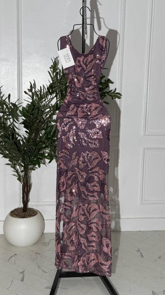 فستان شك مبطن بتفته فاخرة بتصميم أنيق ولمسة لامعة