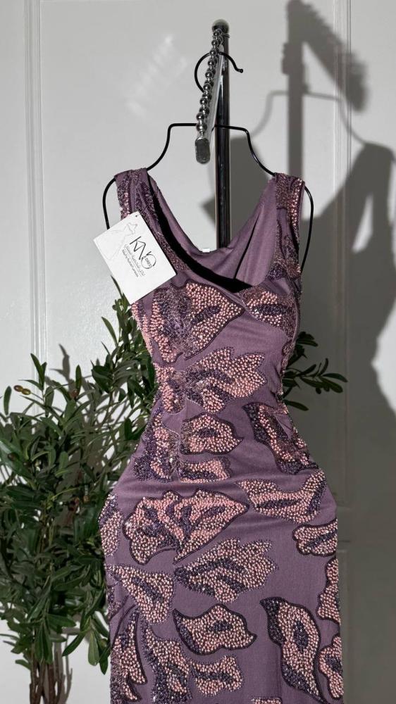• فستان أنيق بخامة الشك الفاخرة المبطنة بتفته تمنحه لمسة فخامة وانسيابية راقية، يتميز بتفاصيل لامعة تنعكس مع الإضاءة لتبرز جمال التصميم. القماش المبطّن يمنح الفستان قواماً متماسكاً ومظهراً راقياً يناسب الإطلالات الفاخرة والمناسبات المسائية