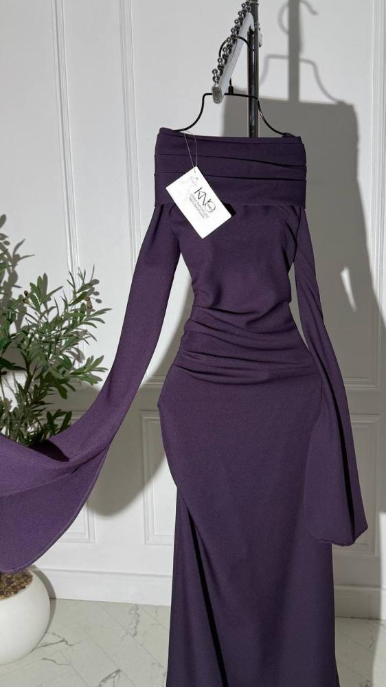 فستان طويل اوف شولدر بأكمام