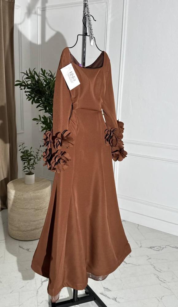 فستان طويل بأكمام طويلة من الورد