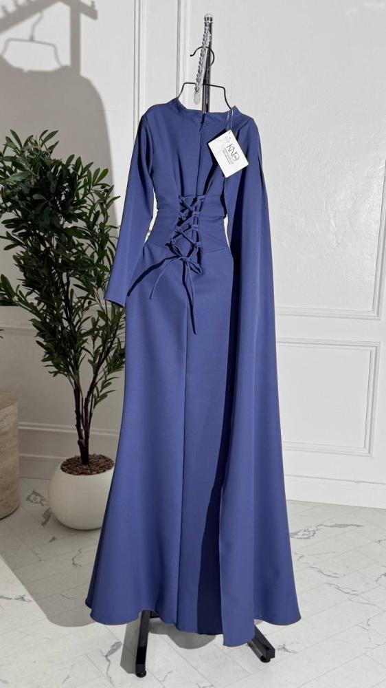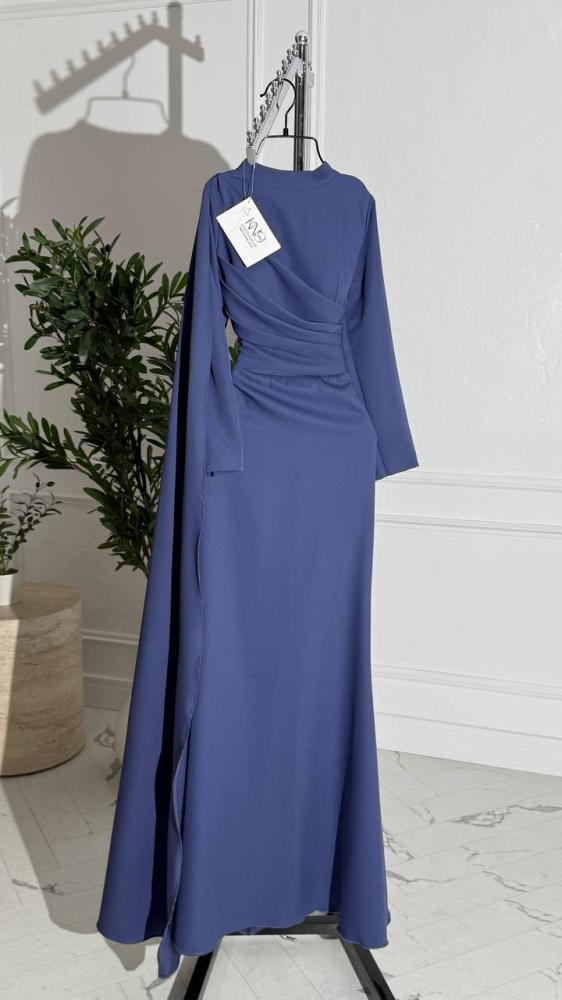 فستان برباط خلفي مع شال جانبي وأكمام غير متساوية