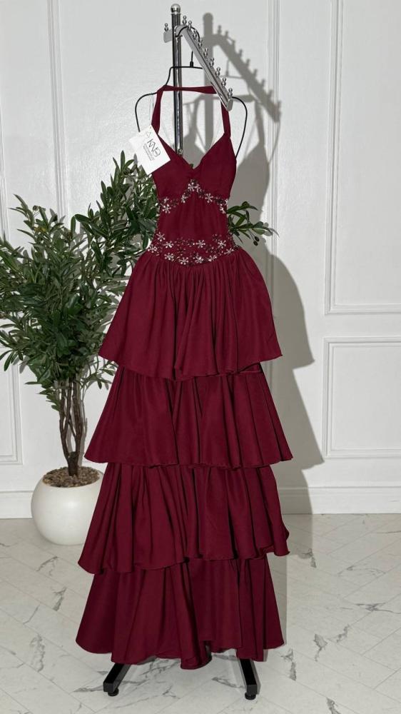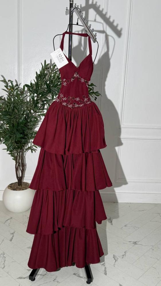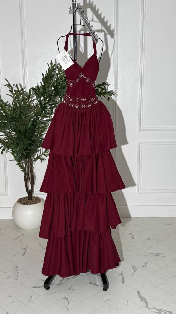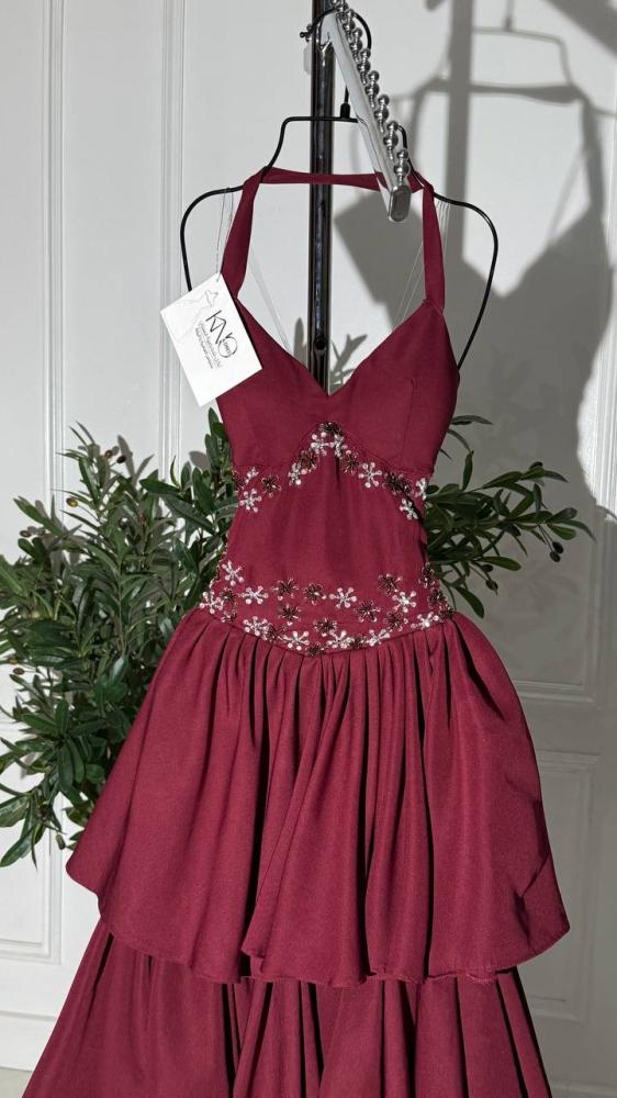 • فستان أنيق من خامة الباربي الفاخرة باللون العودي الجذاب، مزين بتطريز مباشر يدوي متقن يبرز فخامته، ليمنح إطلالة راقية تجمع بين الأناقة والأنوثة بأسلوب فاخر