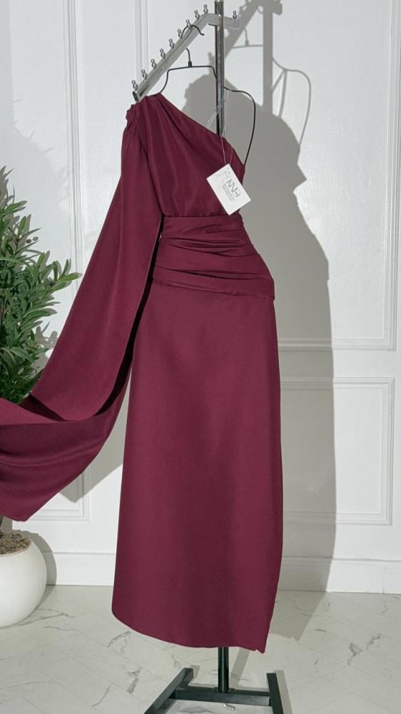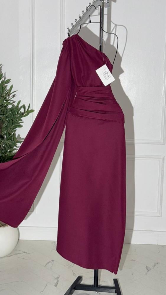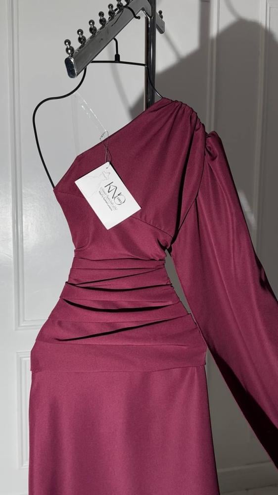 فستان عودي بكتف واحد وكم طويل بتصميم أنثوي ناعم ومظهر راقٍاختاري التميّز مع هذا الفستان العودي الأنيق، بتصميم عصري بكتف واحد يبرز أنوثتك بثقة. قماش باربي الفاخر ينسدل بانسيابية ساحرة، فيما تضيف الطيات الناعمة عند الخصر لمسة راقية تخطف الأنظار في كل مناسبة.