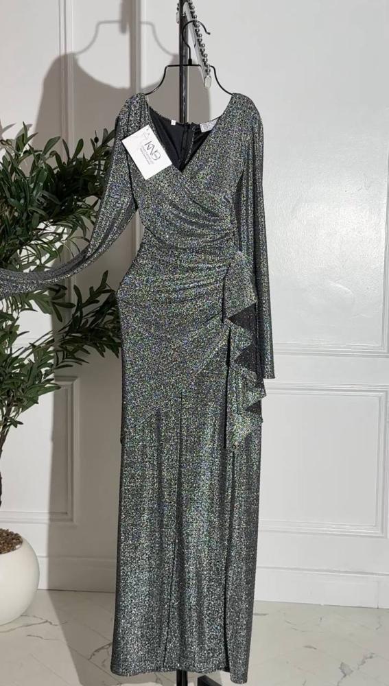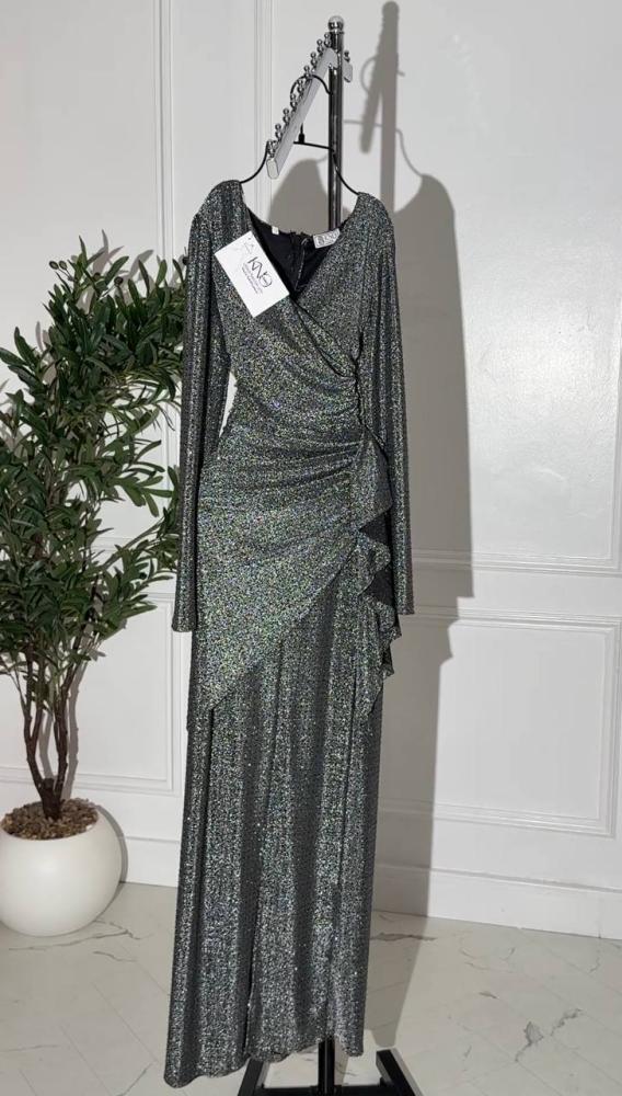 فستان استرتش لامع بطول 58 إنش يبرز القوام بأنوثة وأناقة لافتة.