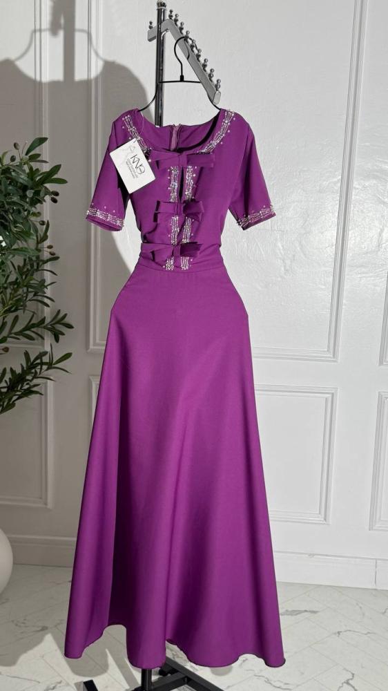 3. التصميم: يتميز الفستان بتطريز مباشر رائع يزين الأكمام والصدر، مما يضيف لمسة جمالية فاخرة تجعله مثاليًا للمناسبات الخاصة.